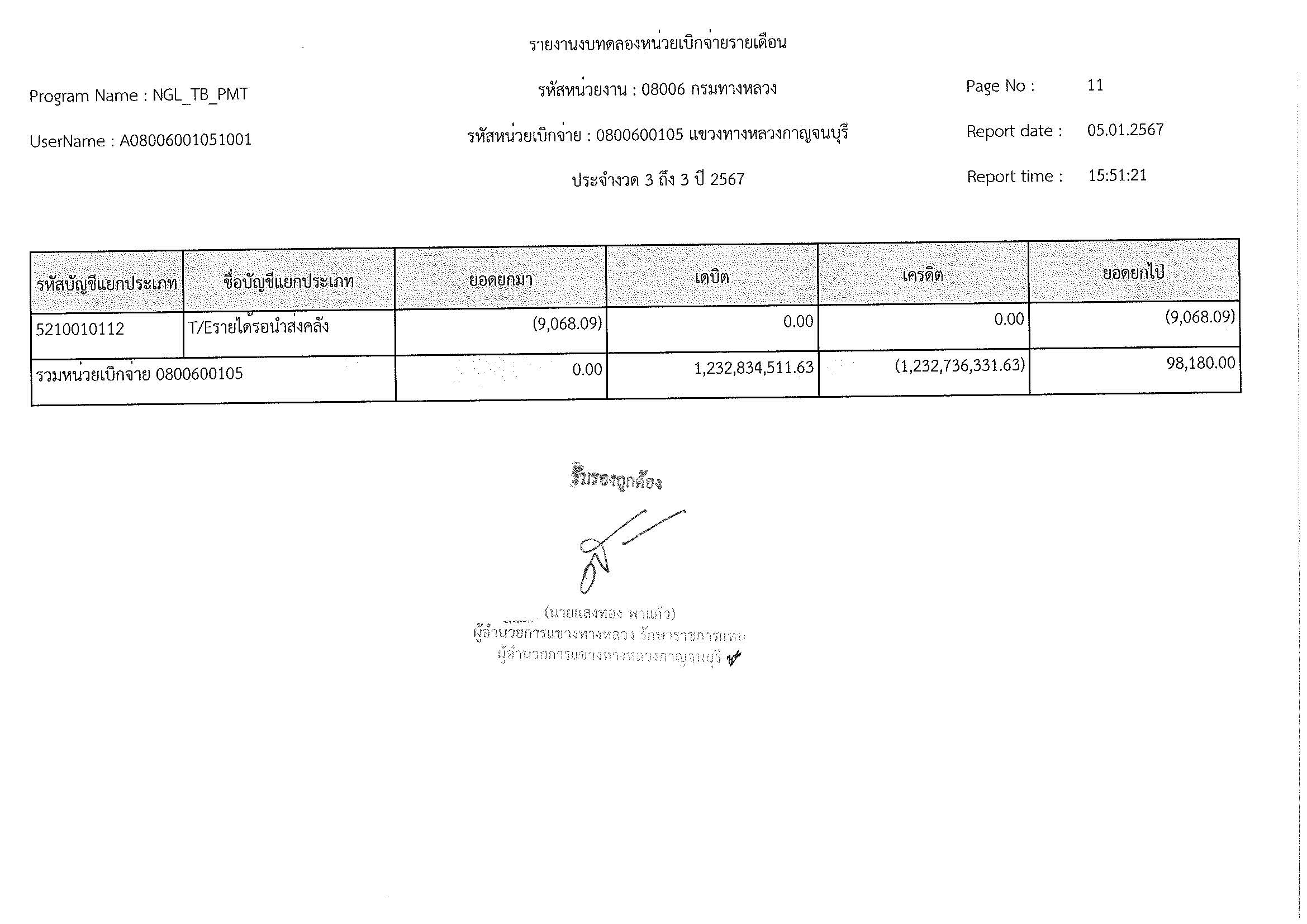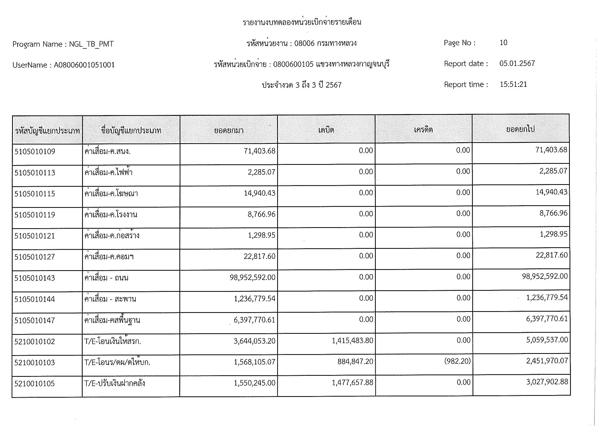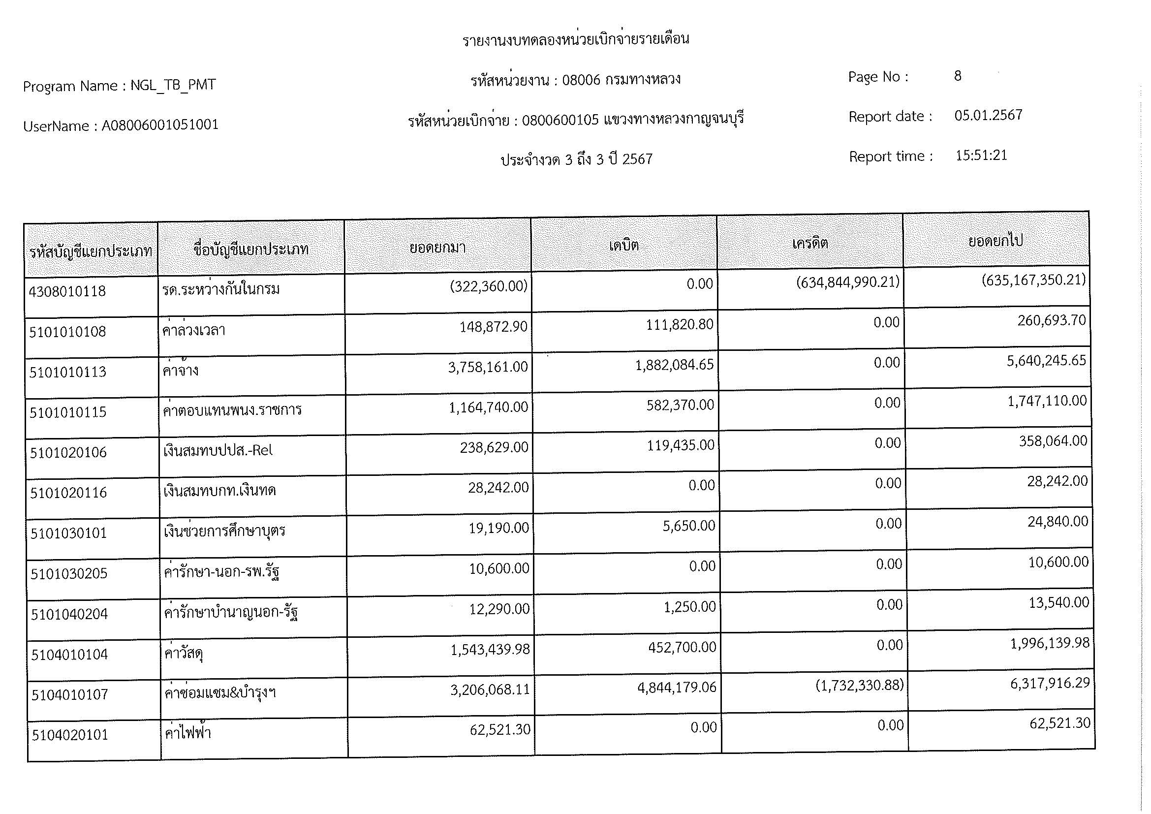 รายงานงบทดลองประจำเดือน ธันวาคม 2566