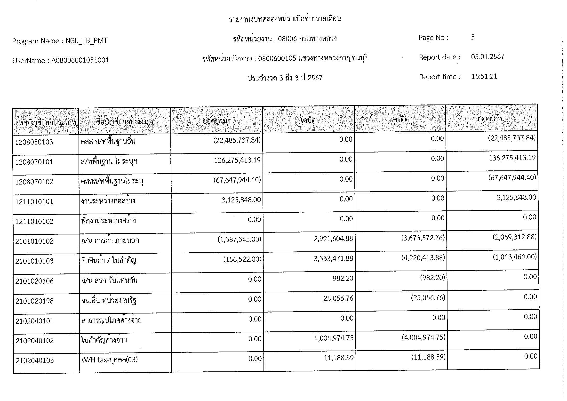 ข้อมูลข่าว : รายงานงบทดลองประจำเดือน ธันวาคม 2566