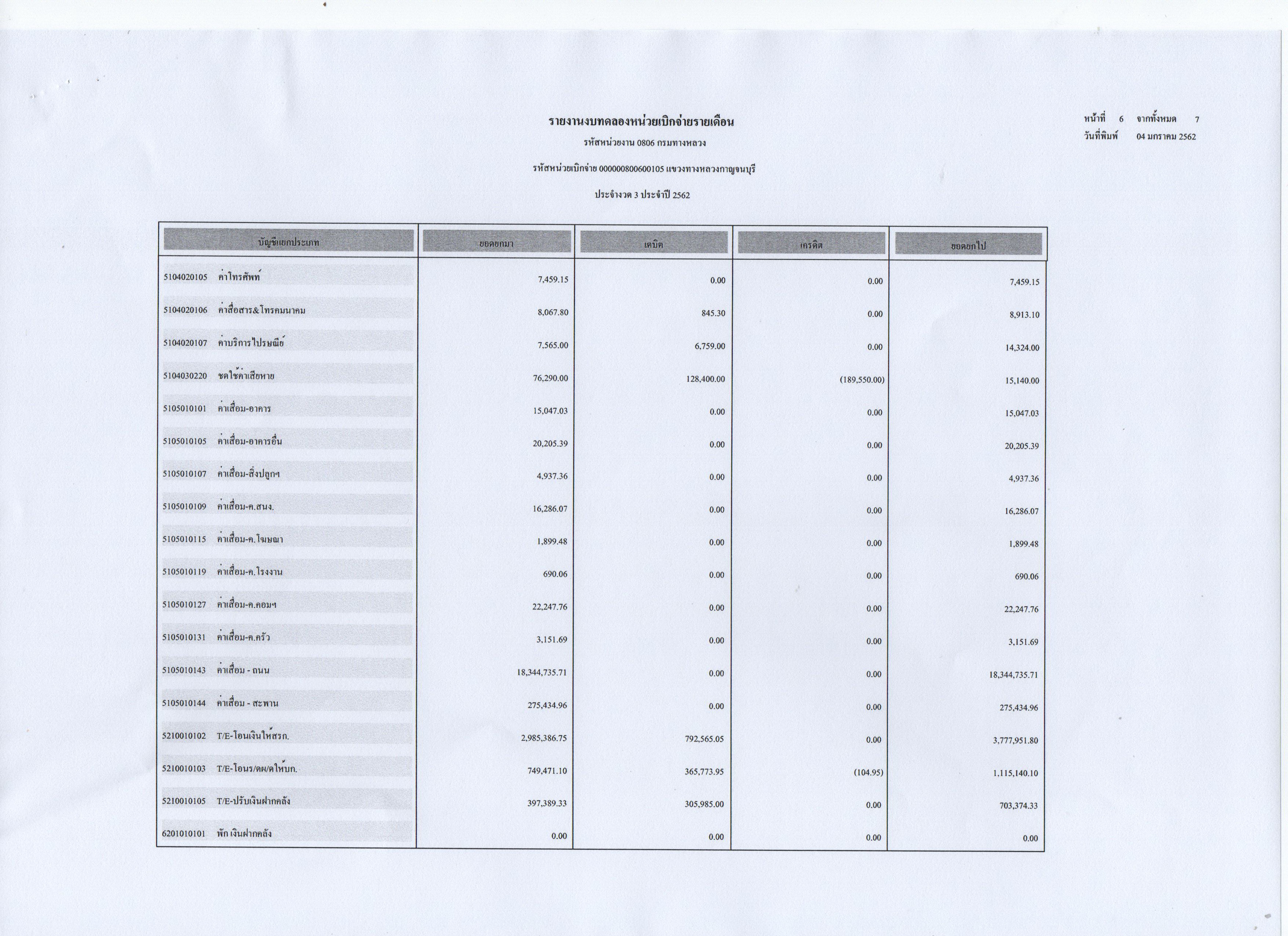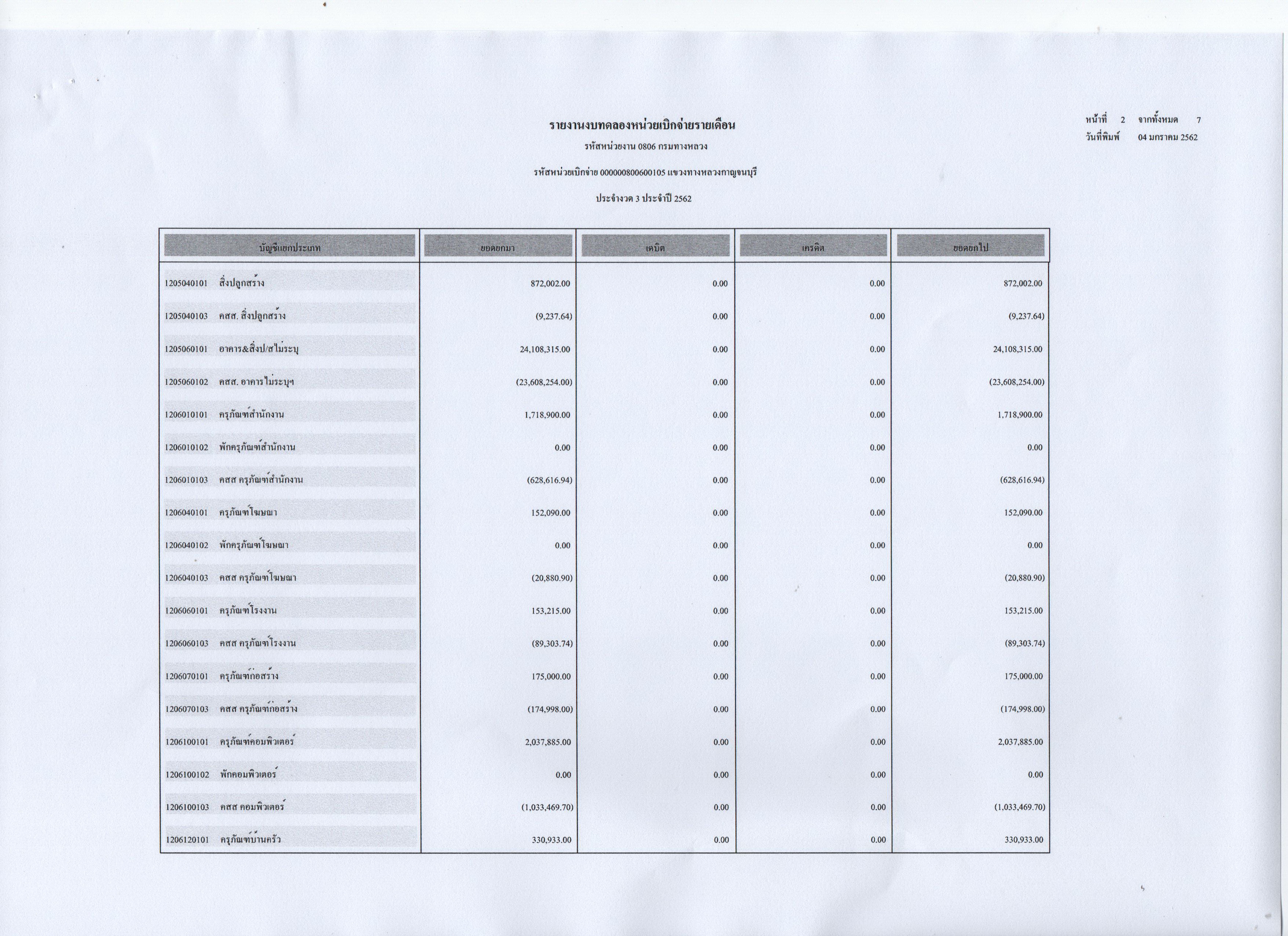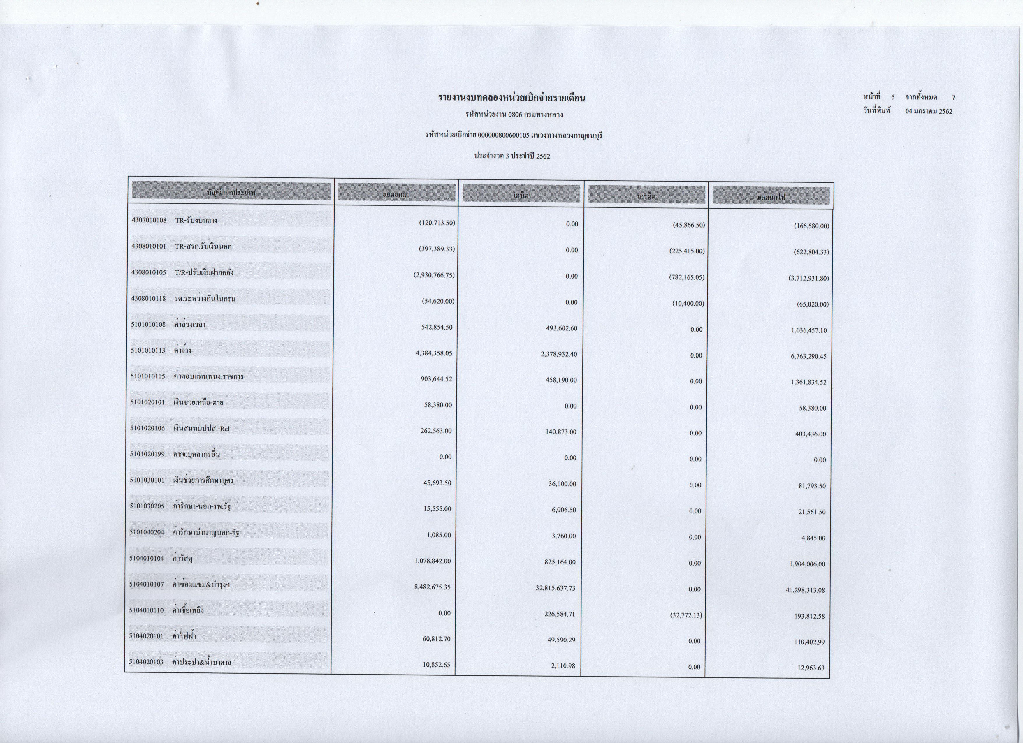 ข้อมูลข่าว : รายงานงบทดลองหน่วยเบิกจ่ายรายเดือน ประจำงวดที่ 3 ประจำปี 2562