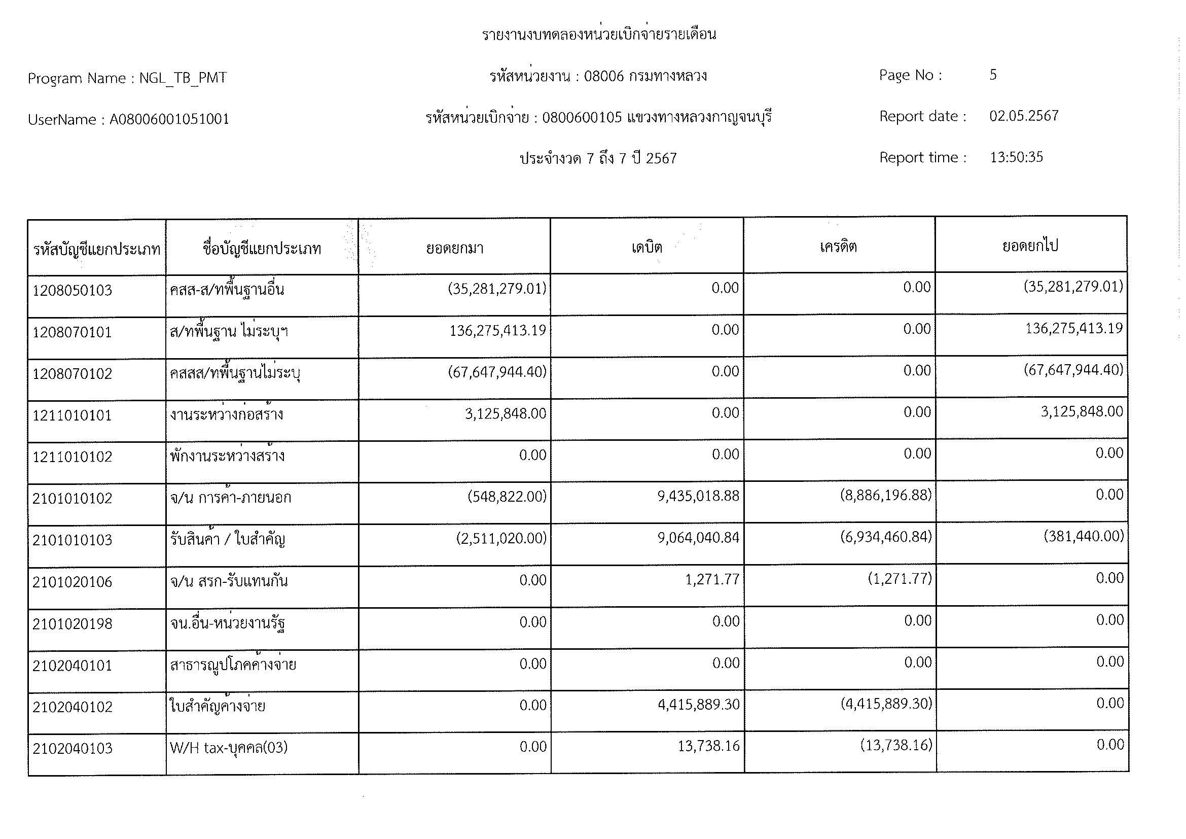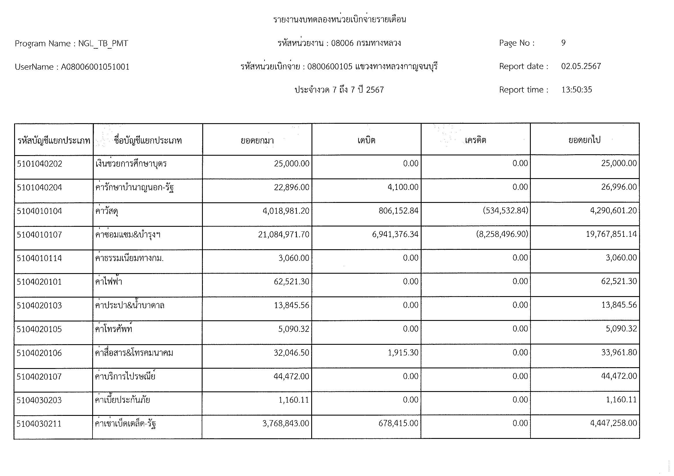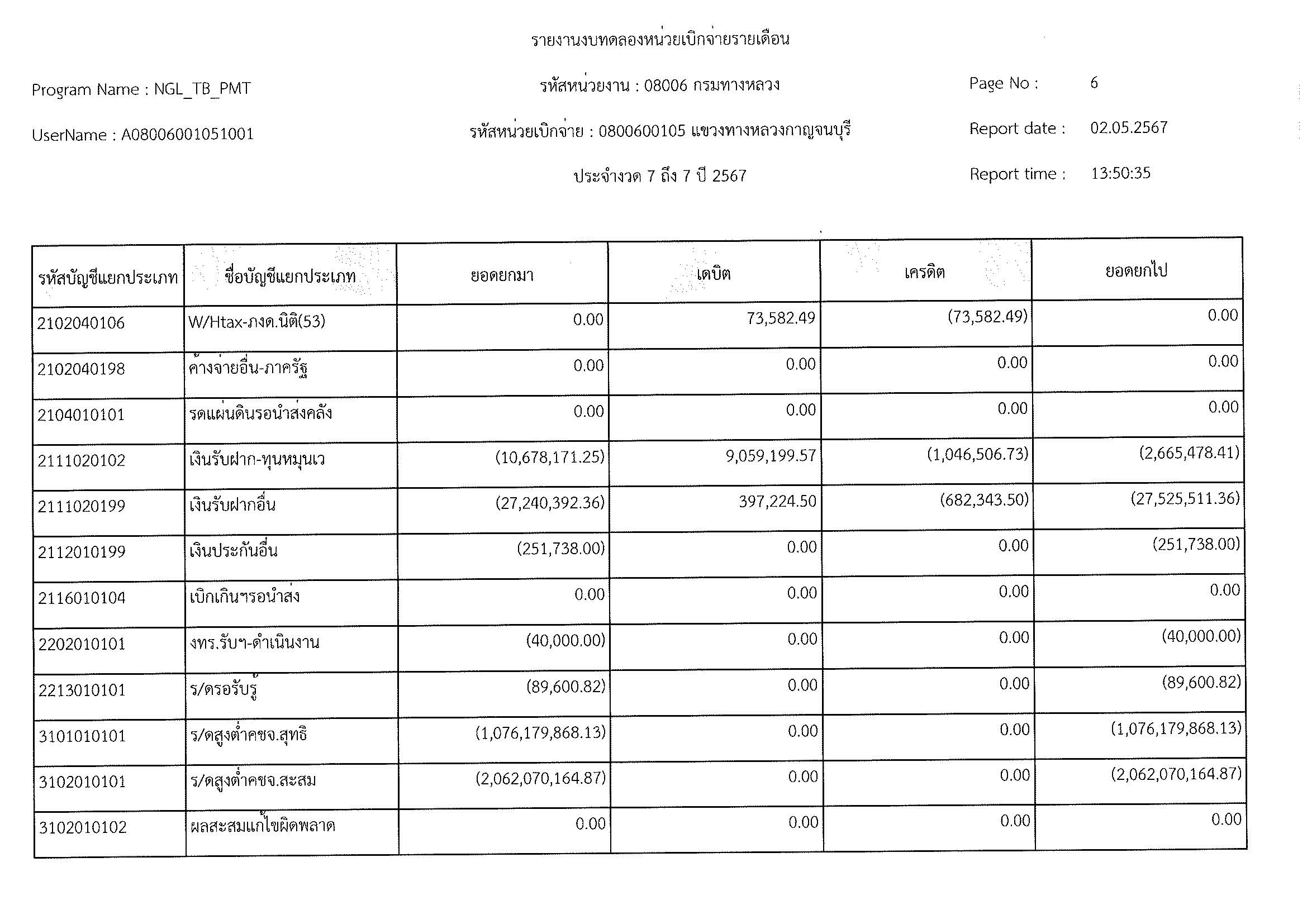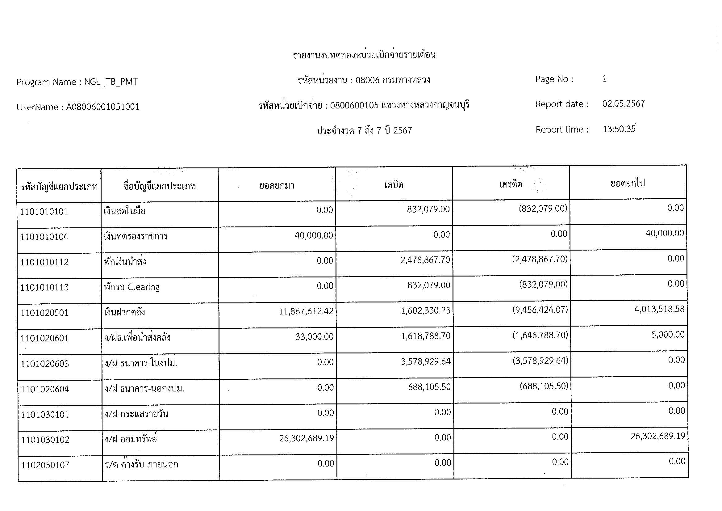 ข้อมูลข่าว : งบทดลองประจำเดือน เมษายน 2567