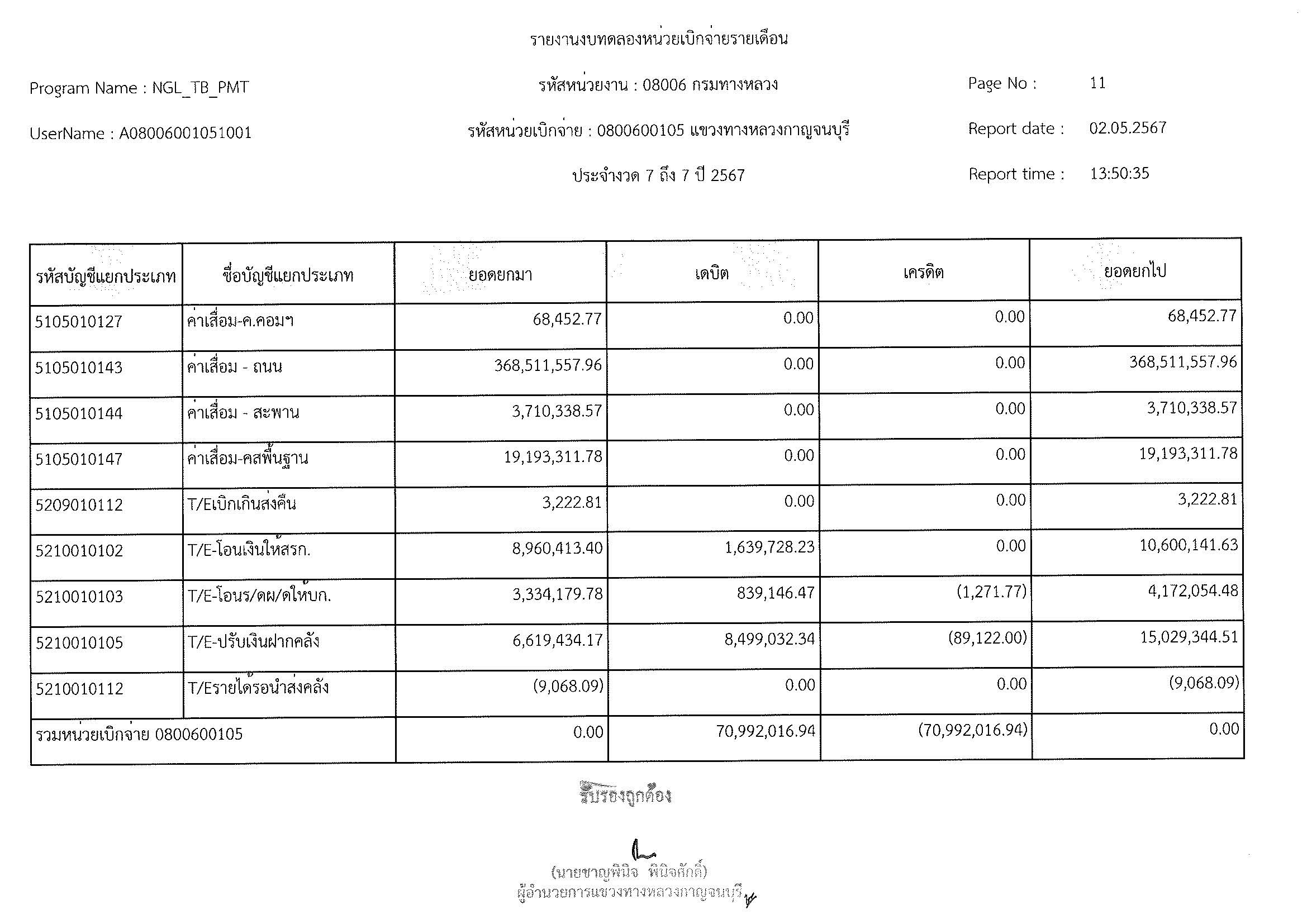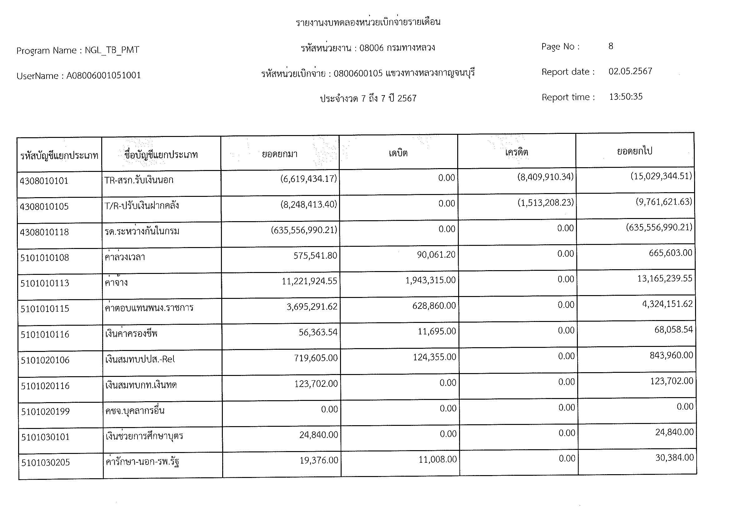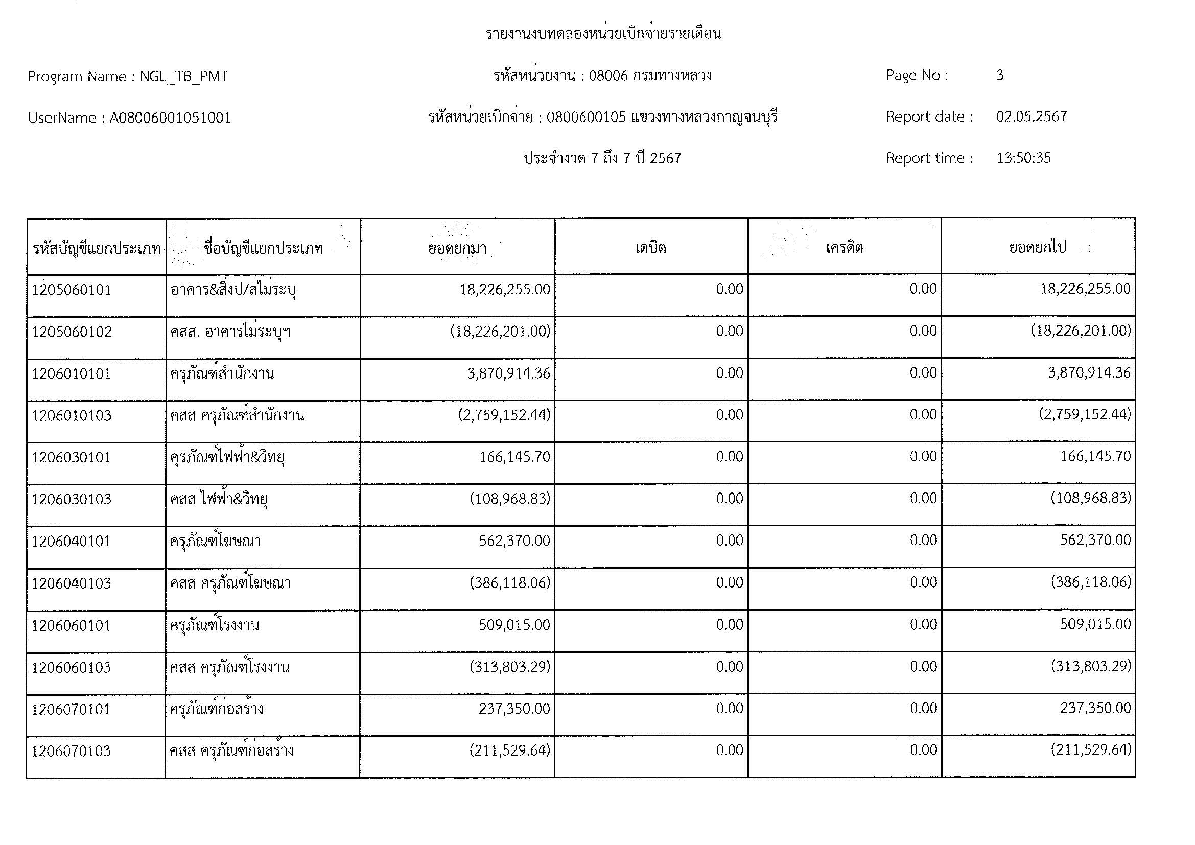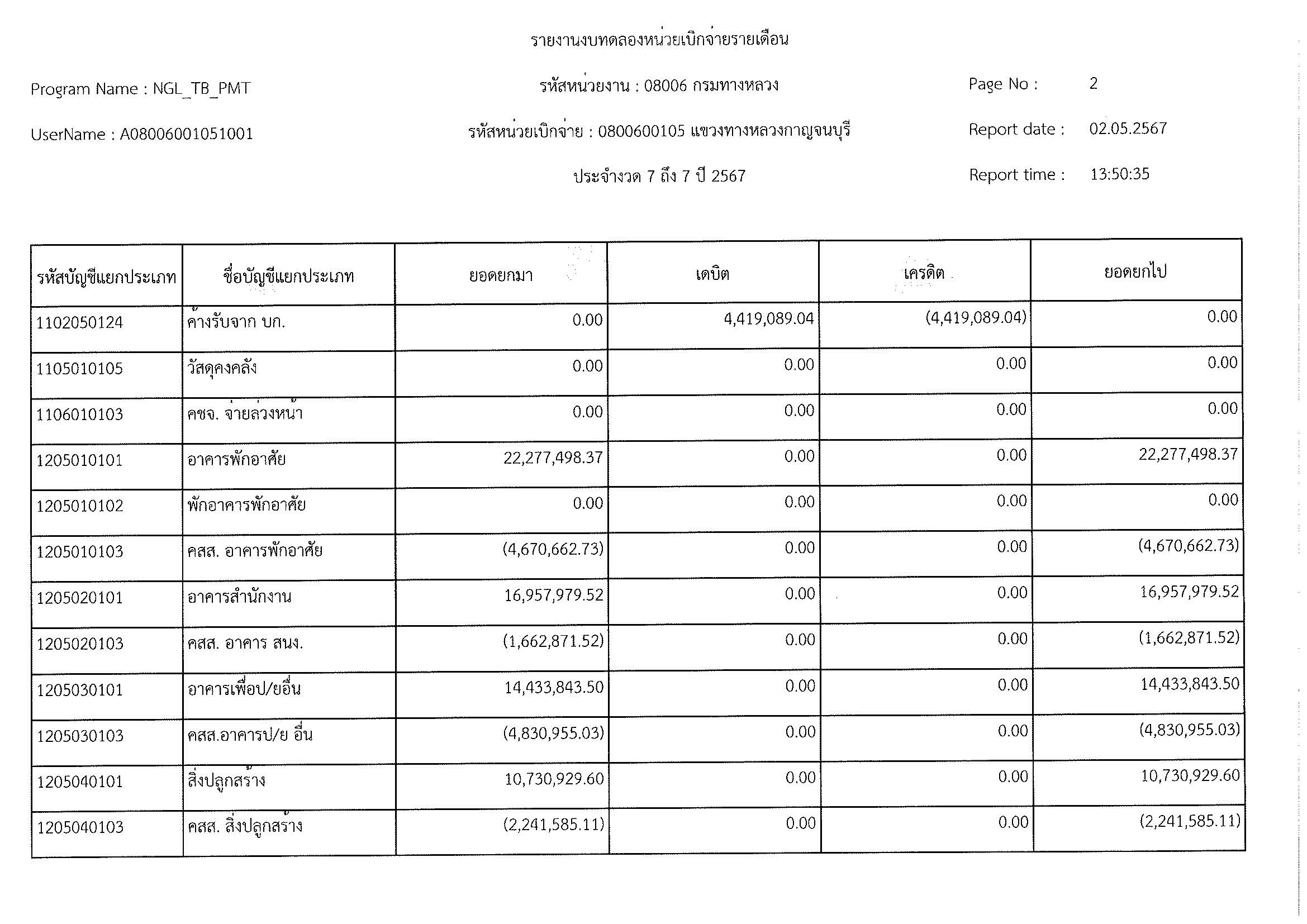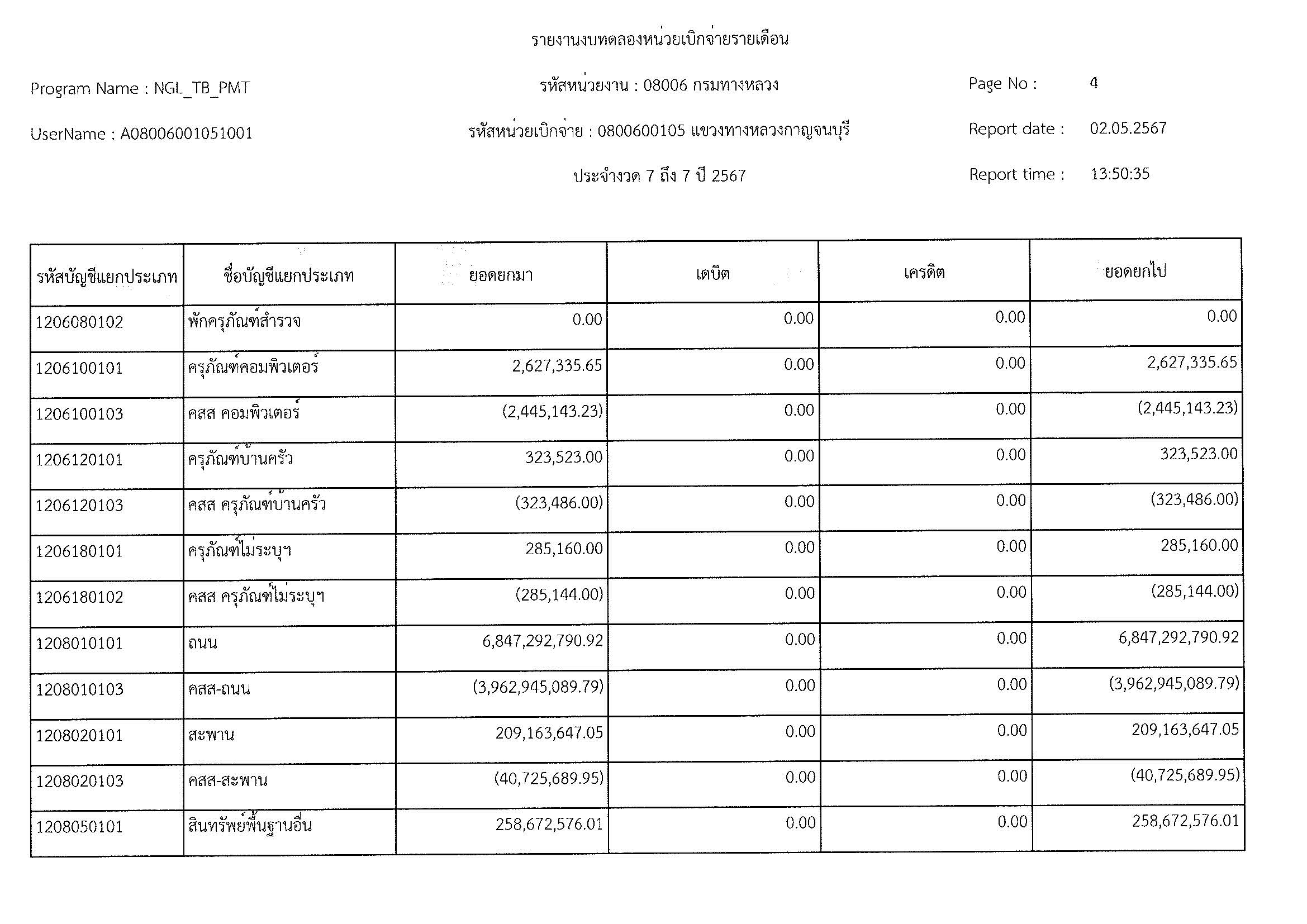 ข้อมูลข่าว : งบทดลองประจำเดือน เมษายน 2567