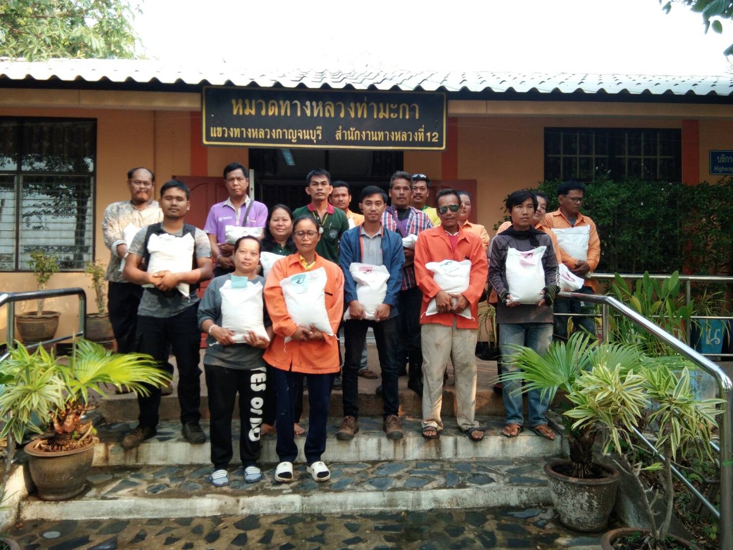 หมวดทางหลวงท่ามะกาทำการแจกข้าวสารจากท่าน ผู้อำนวยการสำนักงานทางหลวงที่ 12 เพื่อเป็นขวัญกำลังใจในการทำงานให้กับเจ้าหน้าที่หมวดทางหลวงท่ามะกา ทุกท่าน