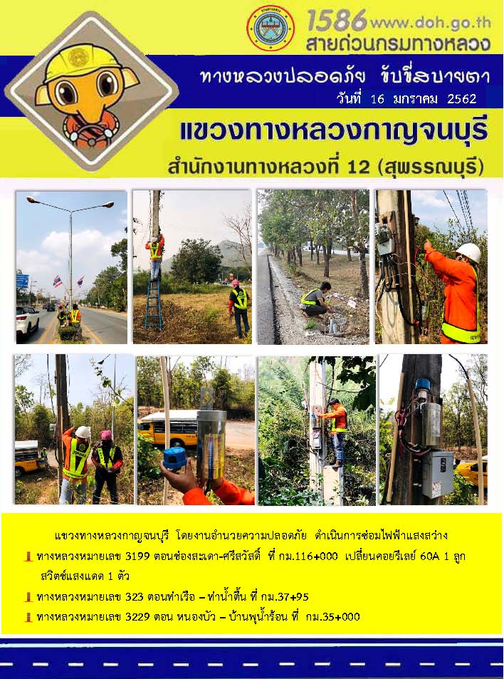 ข้อมูลข่าว : งานอำนวยความสะดวกและความปลอดภัย โดยแขวงทางหลวงกาญจนบุรี 17/01/62