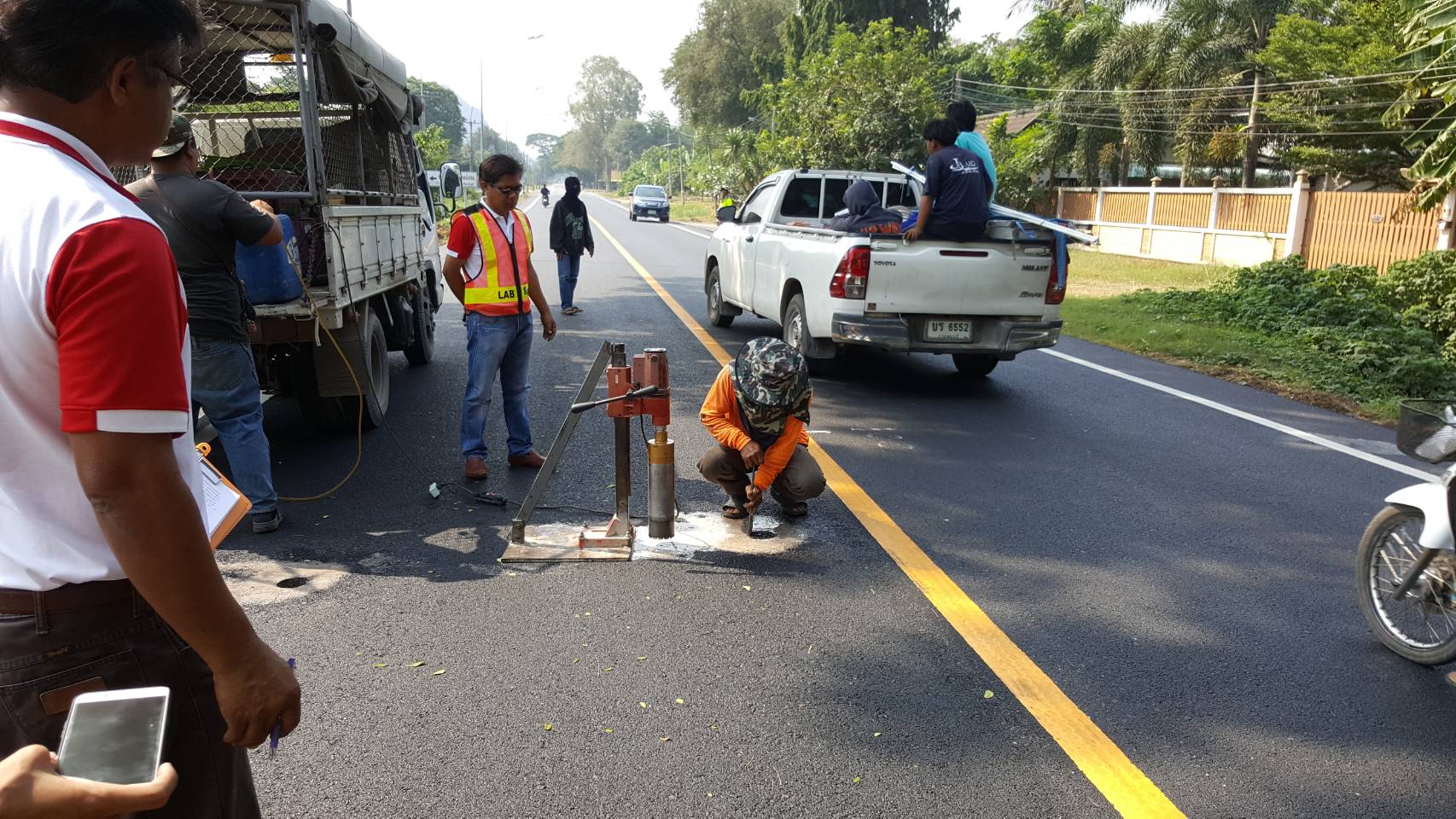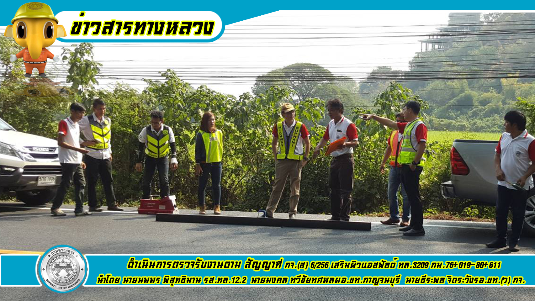 นายนพพร พิสุทธิมาน รองผู้อำนวยการสำนักงานทางหลวงที่ 12 ,นายมงคล ทวีชัยทศพลผู้อำนวยการแขวงทางหลวงกาญจนบุรี ,นายธีระพล จิตระวัง รองผู้อำนวยการแขวงทางหลวงกาญจนบุรี ฝ่ายวิศวกรรม และคณะเจ้าหน้าที่กรมทางหลวง ดำเนินการตรวจรับงานตาม สัญญาที่ กจ.(ส) 6/2562 เสริมผิวแอสฟัลท์ ทางหลวงหมายเลข 3209 ตอนด่านมะขามเตี้ย - กาญจนบุรี กม.76+019-80+611 17/01/62
