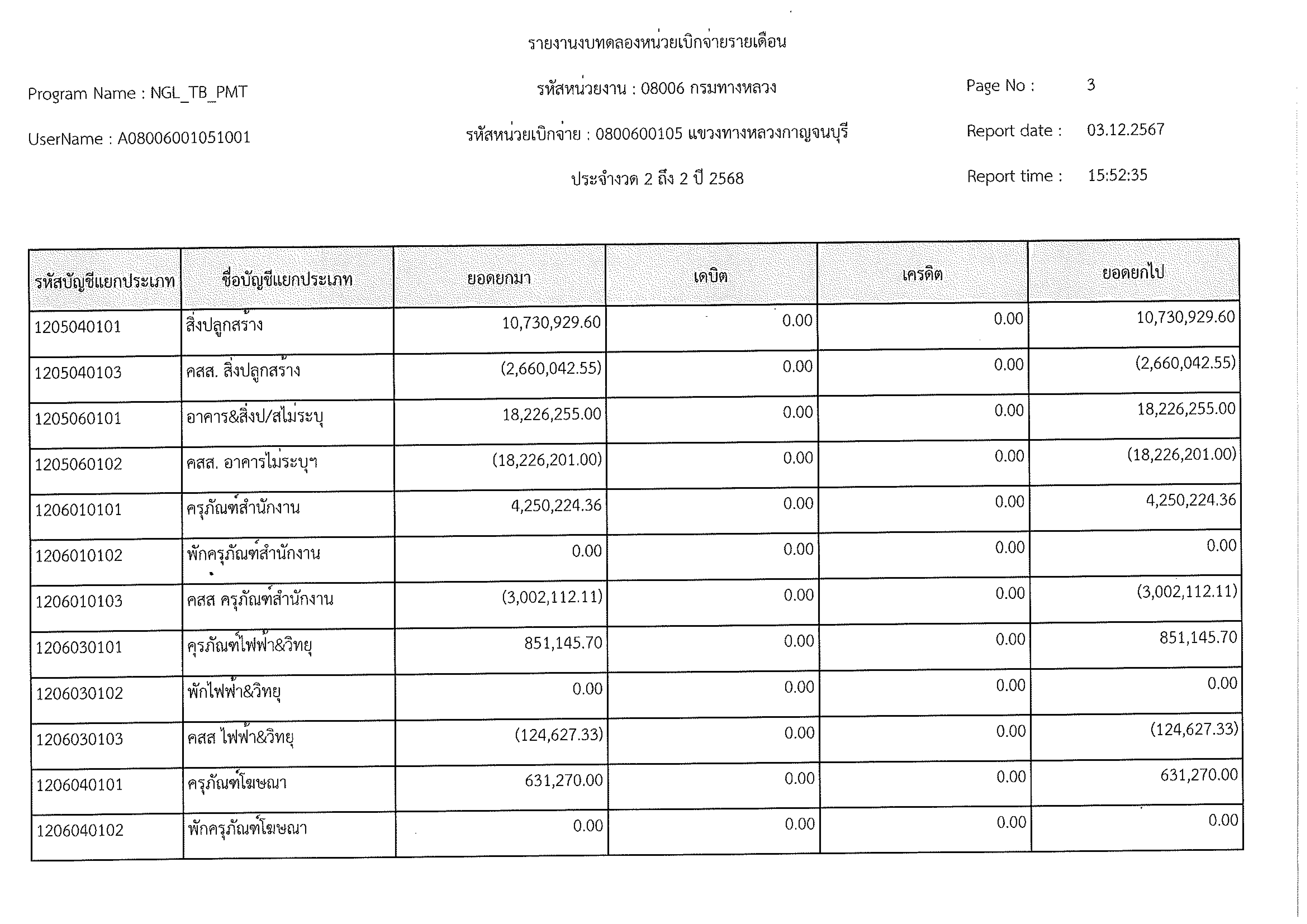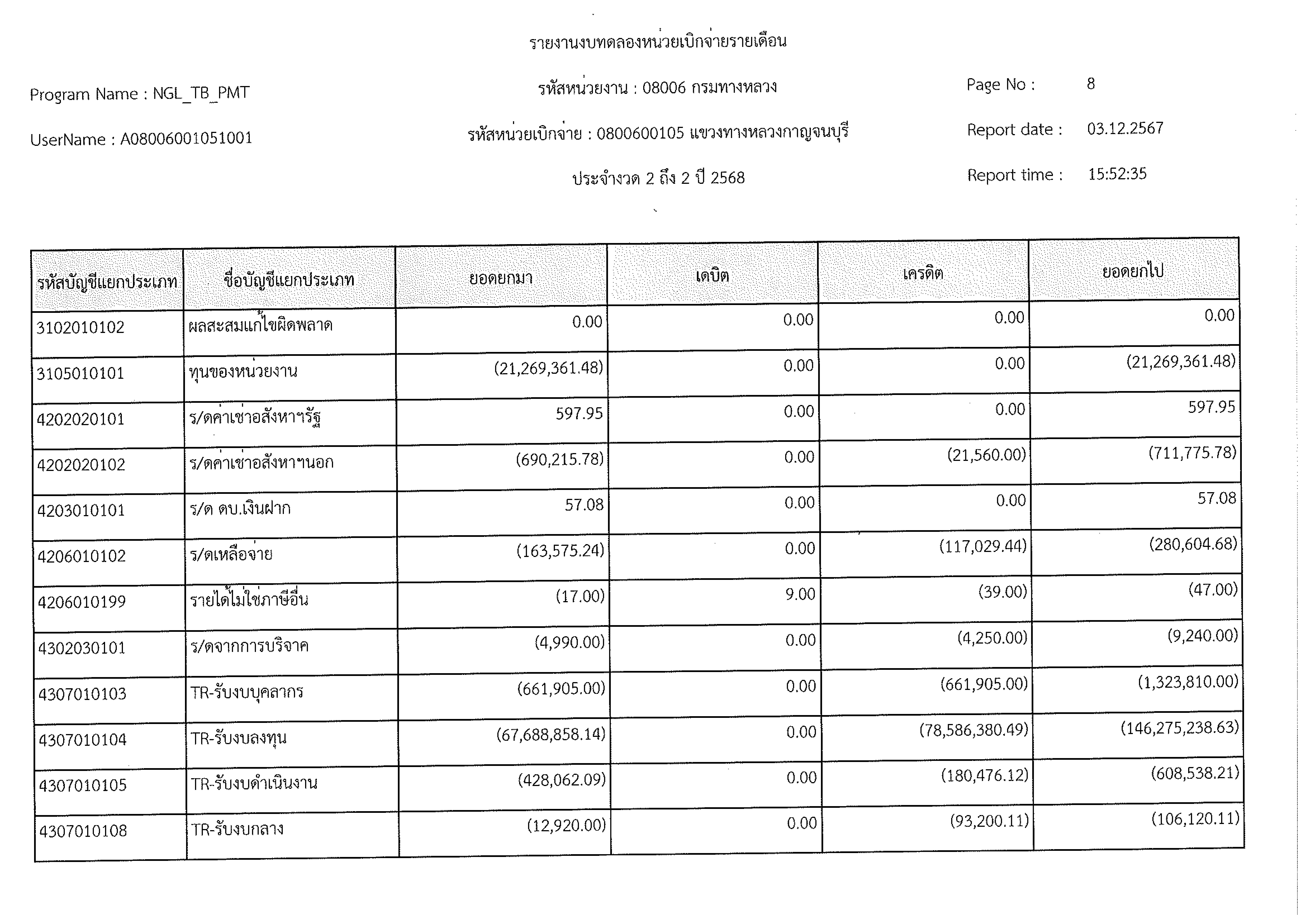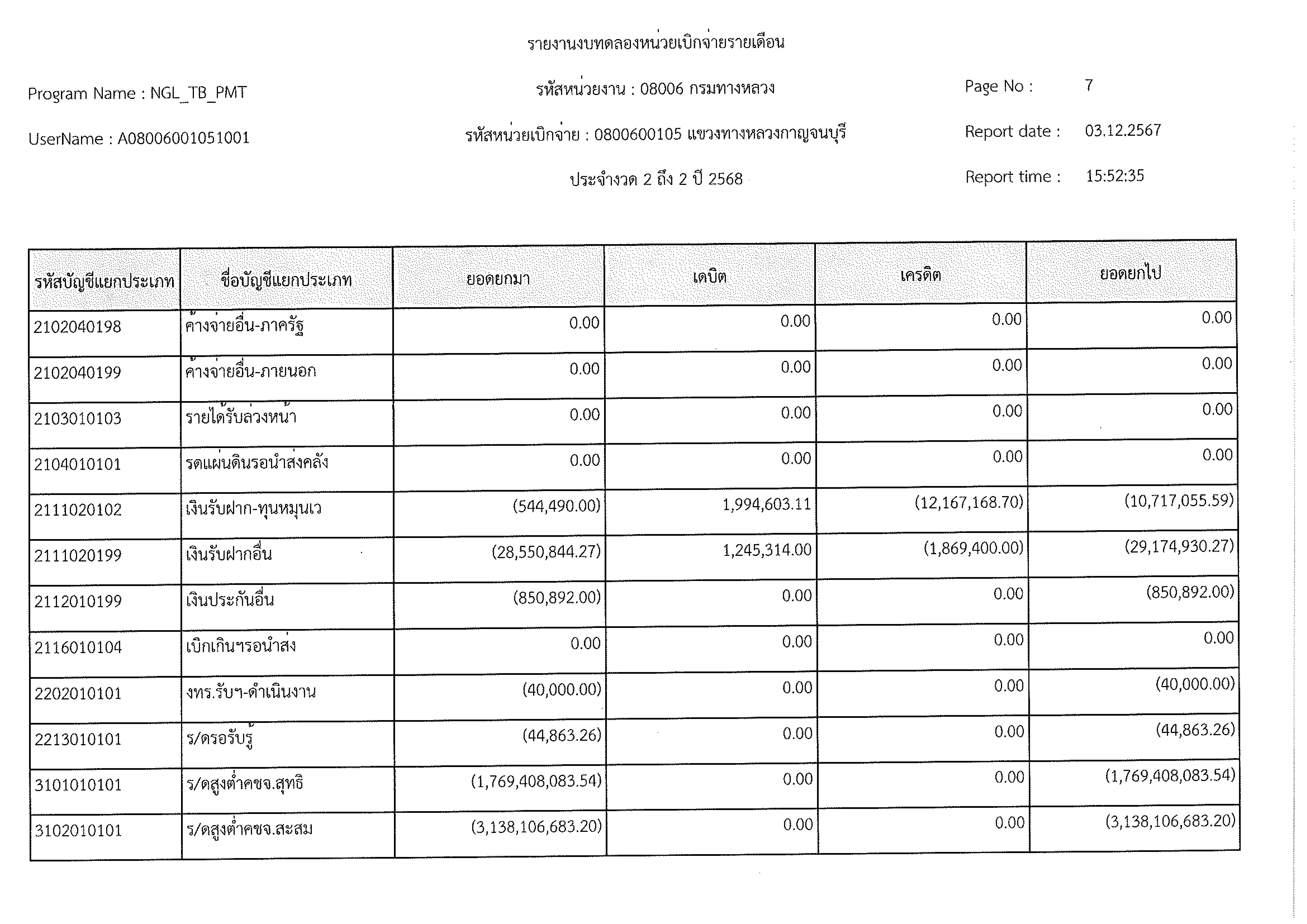ข้อมูลข่าว : งบทดลอง พ.ย. 2567