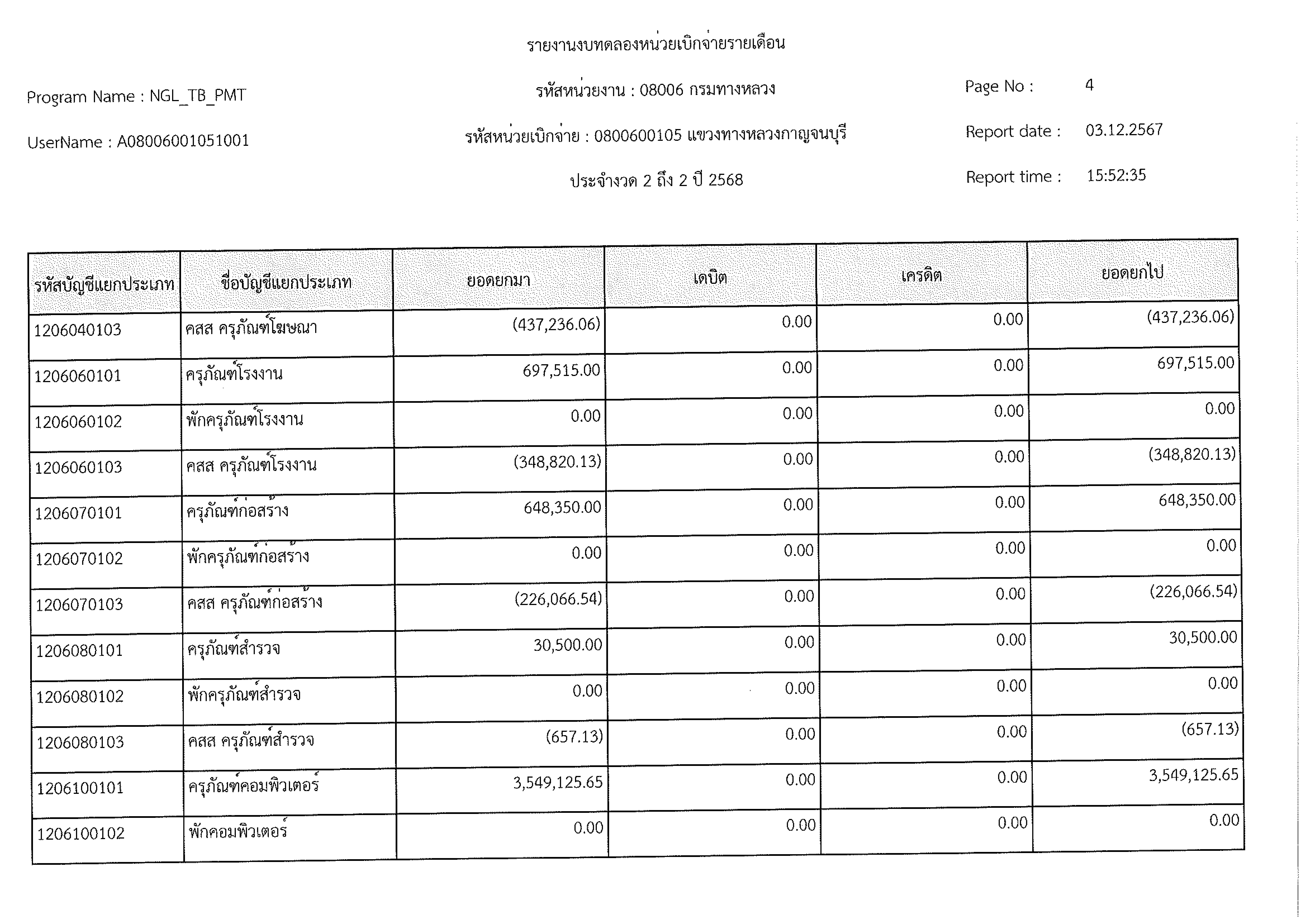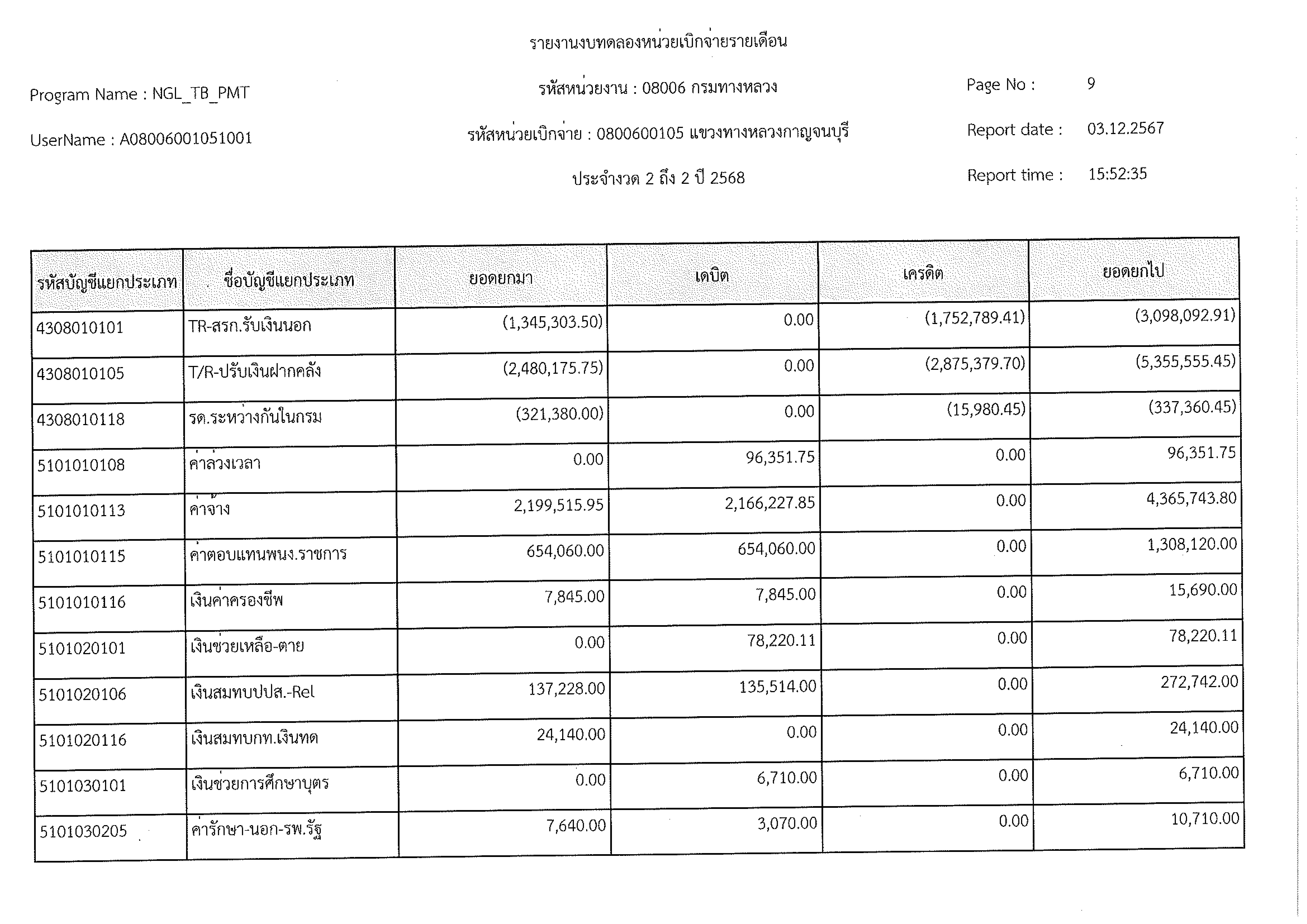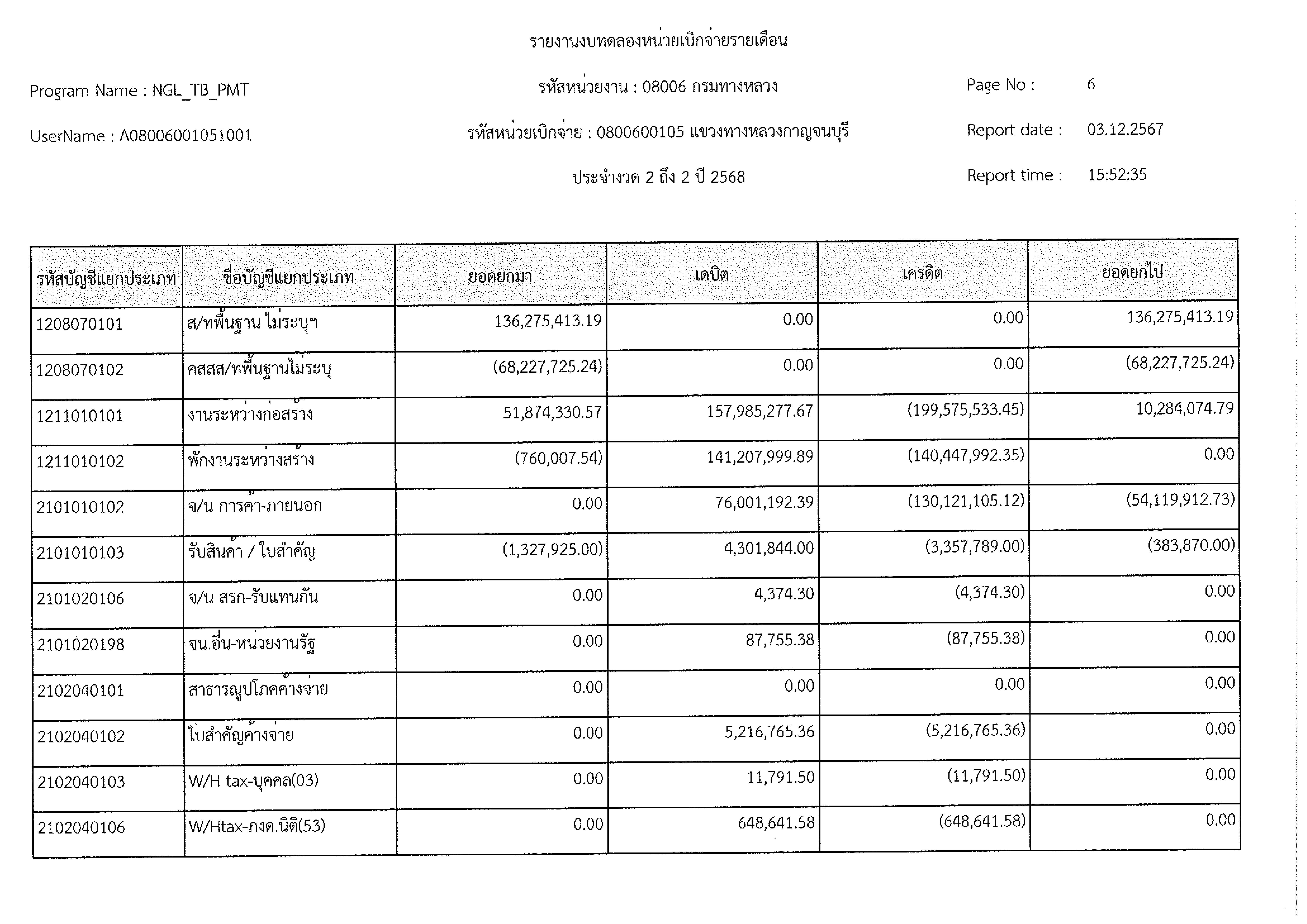 ข้อมูลข่าว : งบทดลอง พ.ย. 2567