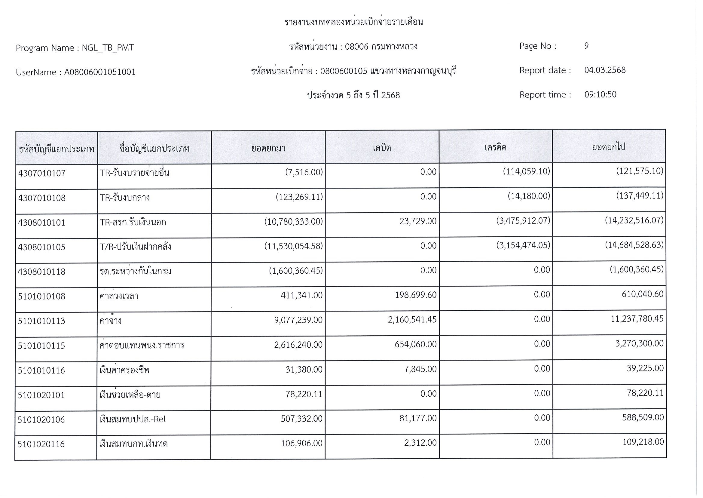 ข้อมูลข่าว : รายงานงบทดลอก ประจำงวด 5 ถึง 5 ปี 2568