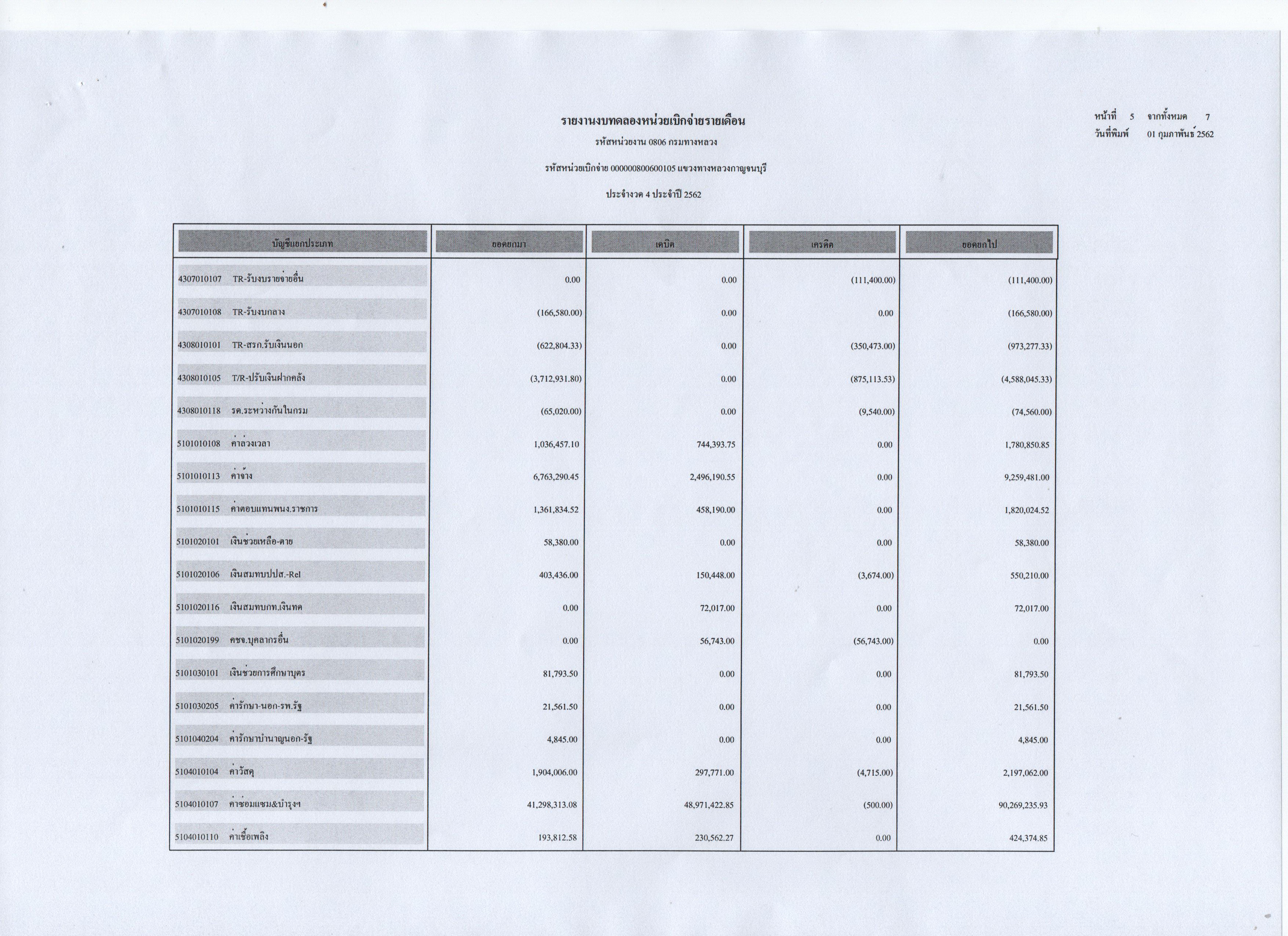 รายงานงบทดลองหน่วยเบิกจ่ายรายเดือน ประจำงวดที่ 4 ประจำปี 2562