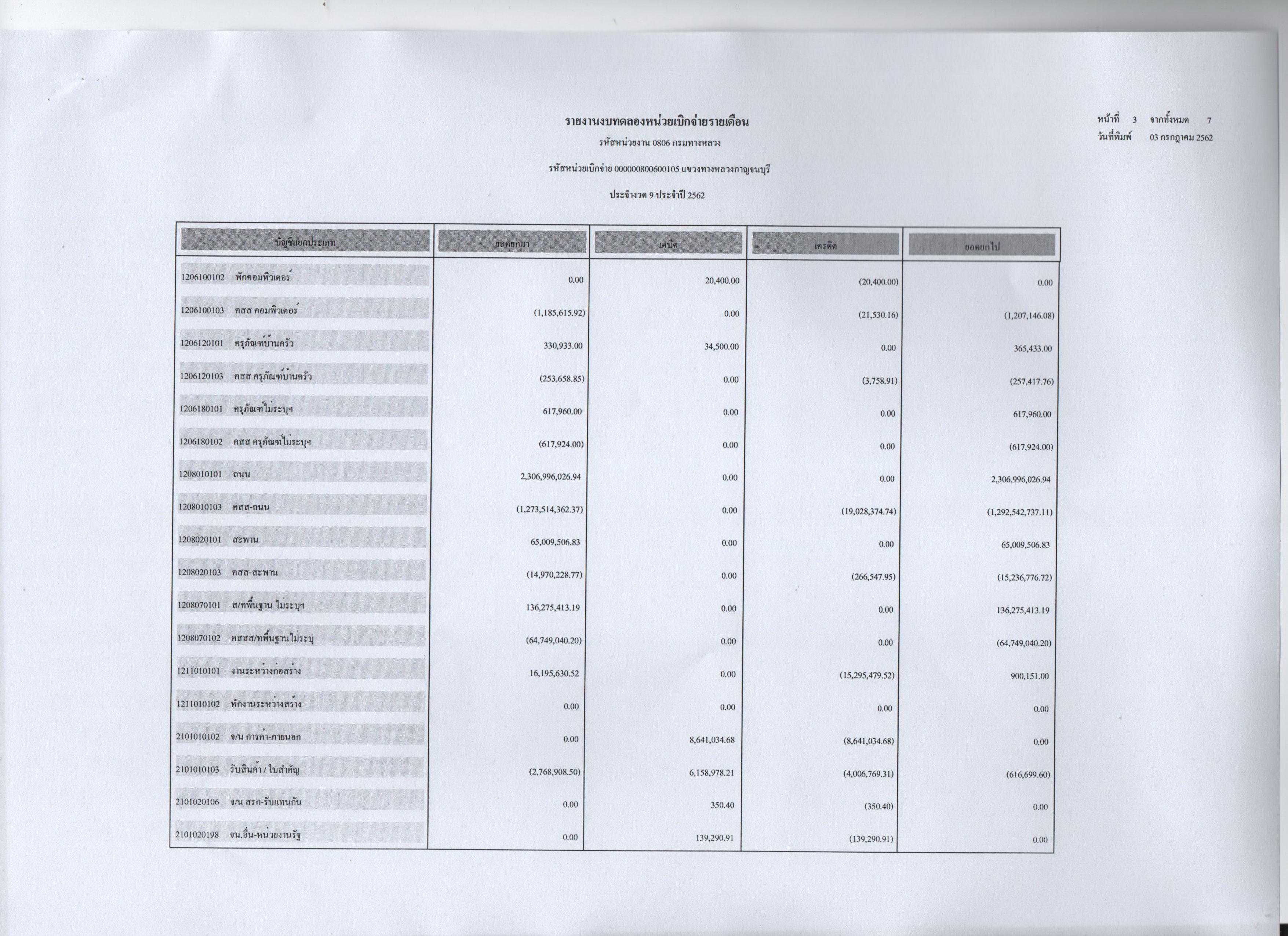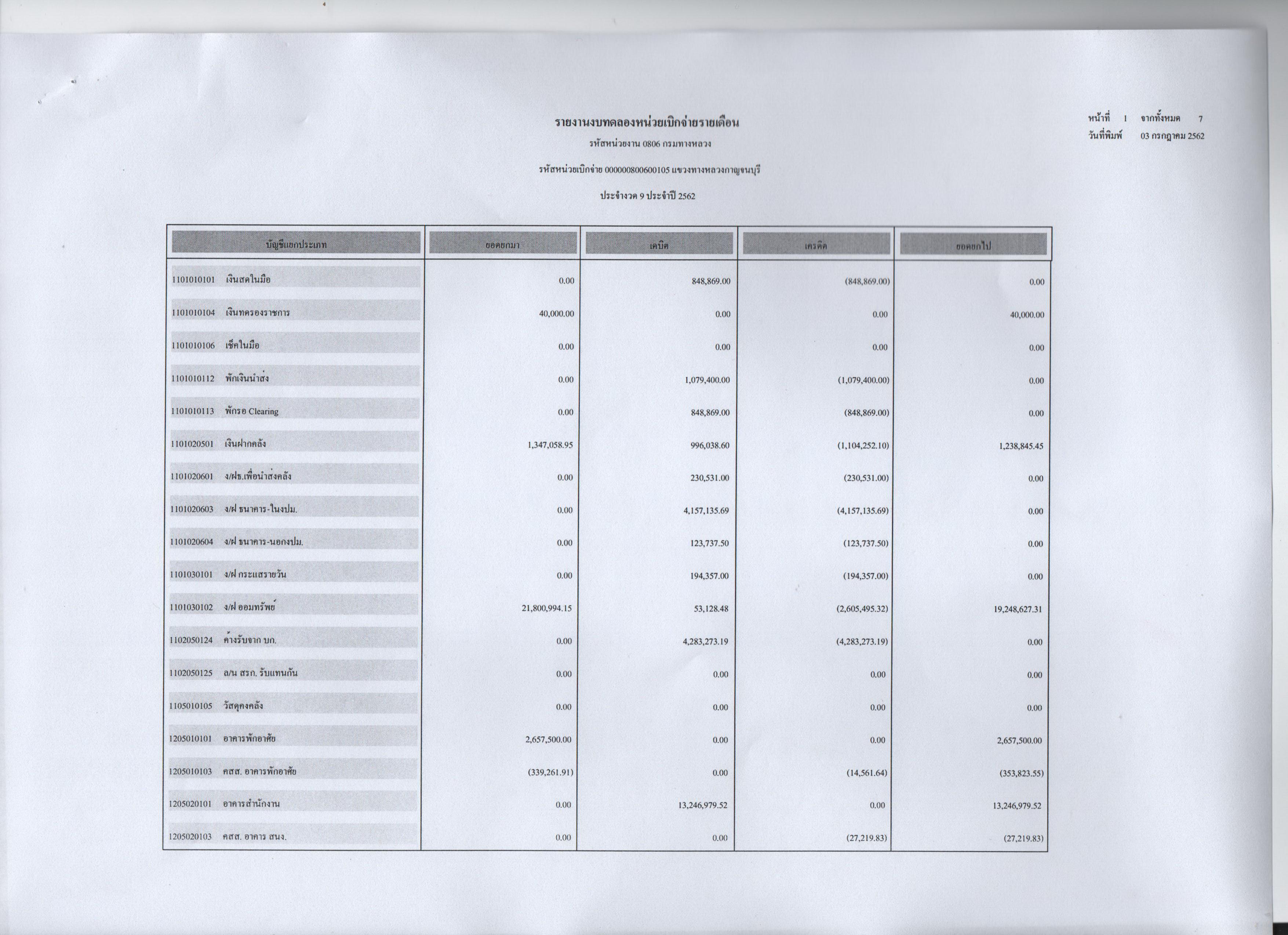 รายงานงบทดลองหน่วยเบิกจ่ายรายเดือน ประจำงวดที่ 9 ประจำปี 2562