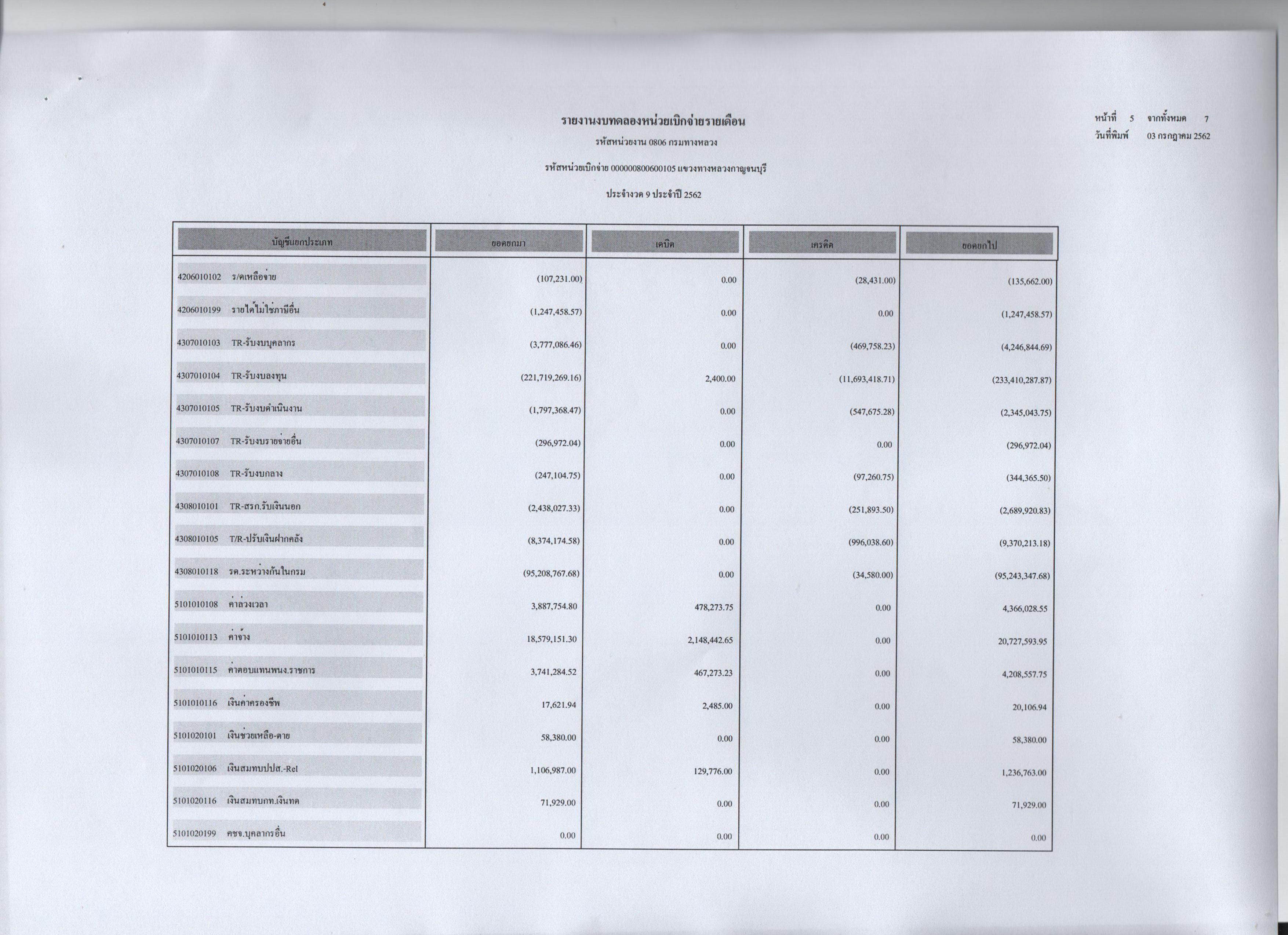 ข้อมูลข่าว : รายงานงบทดลองหน่วยเบิกจ่ายรายเดือน ประจำงวดที่ 9 ประจำปี 2562