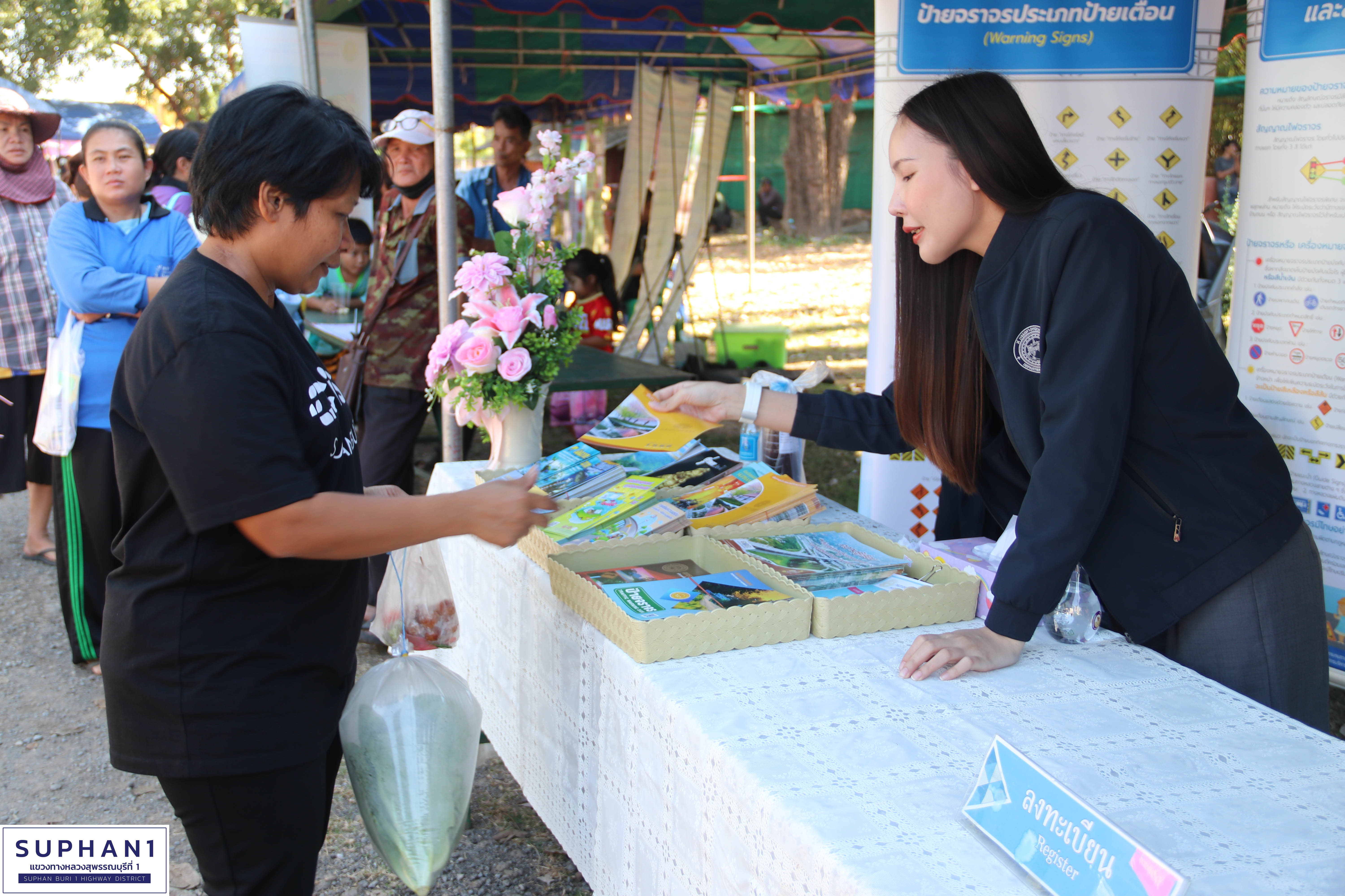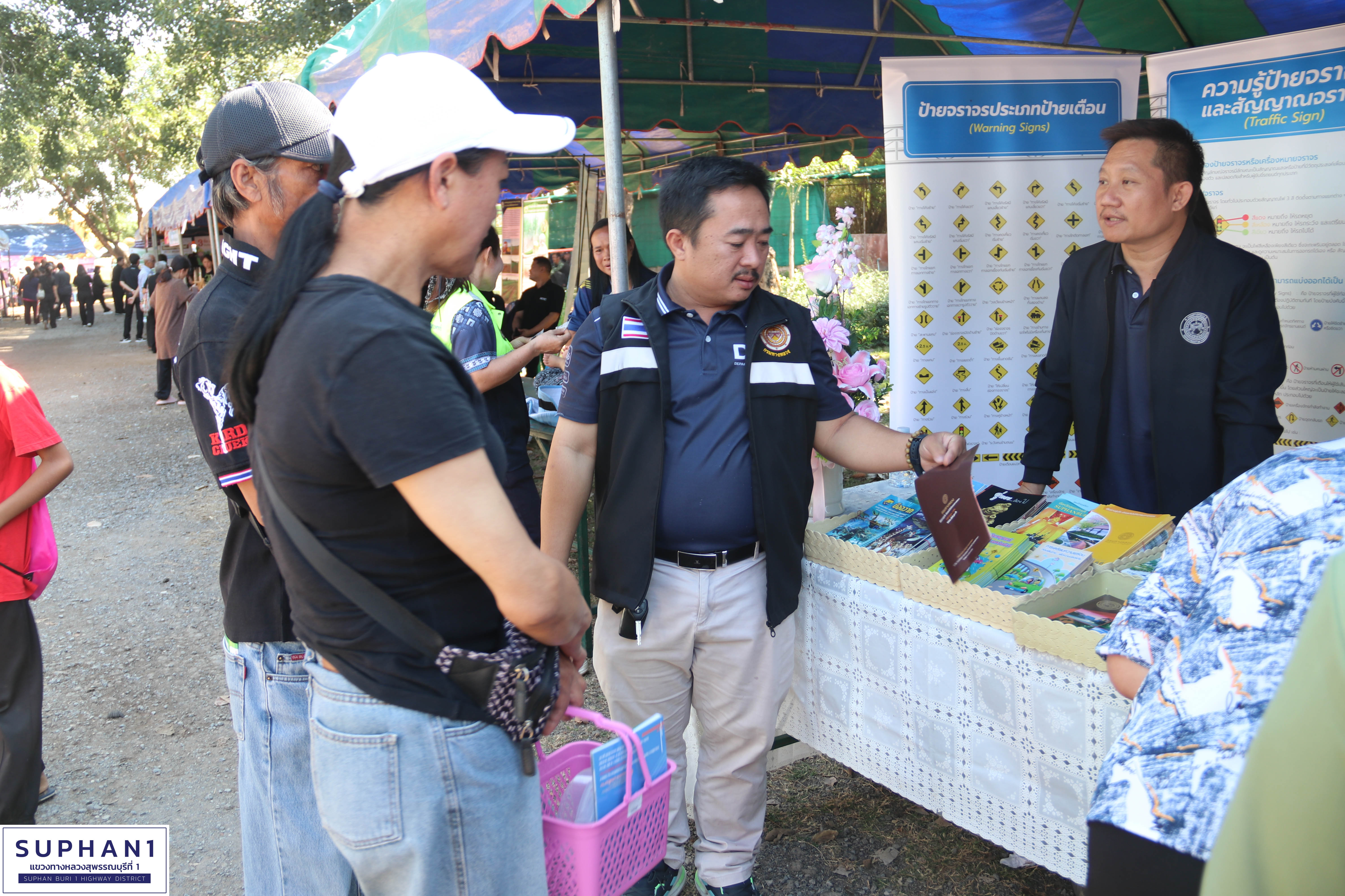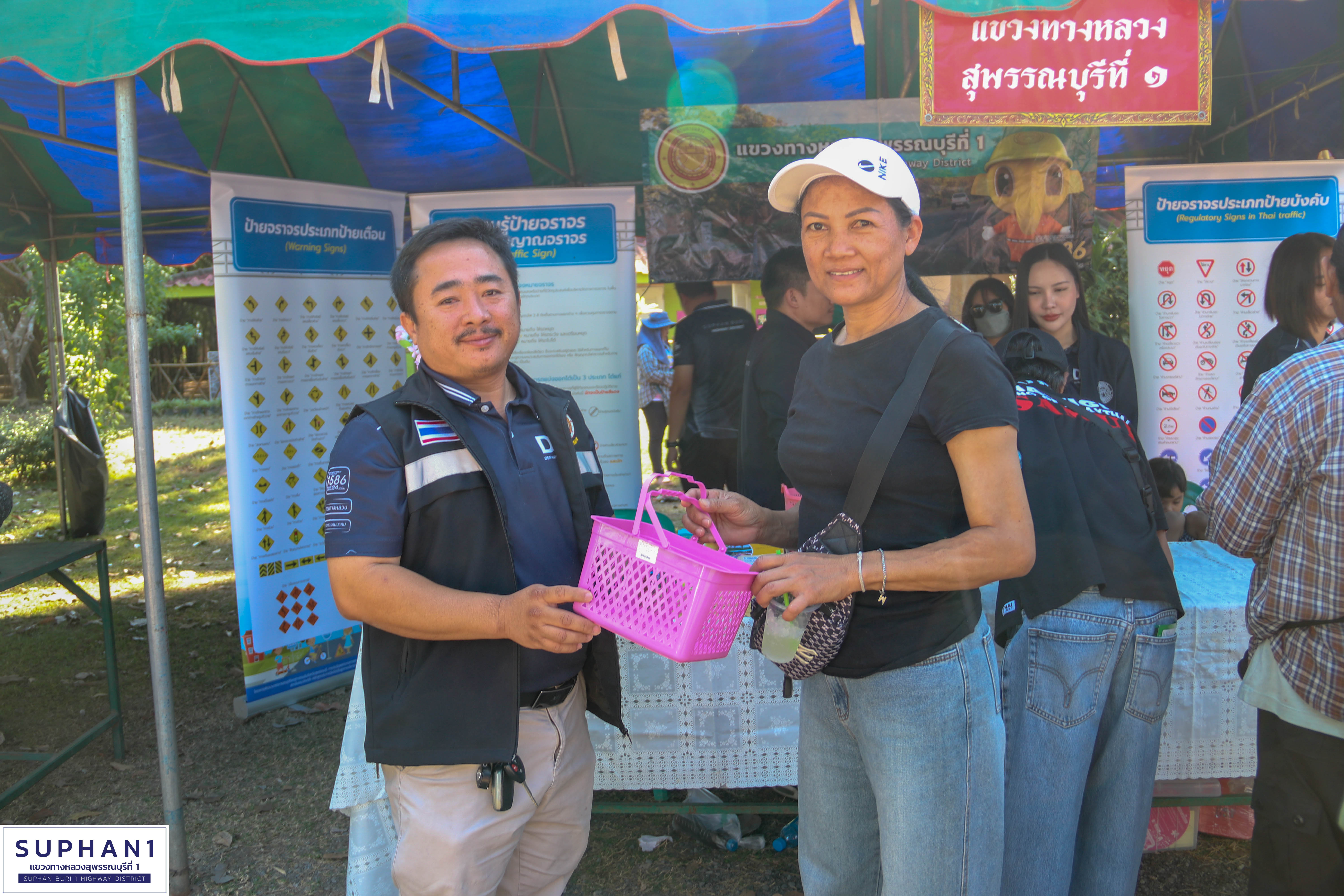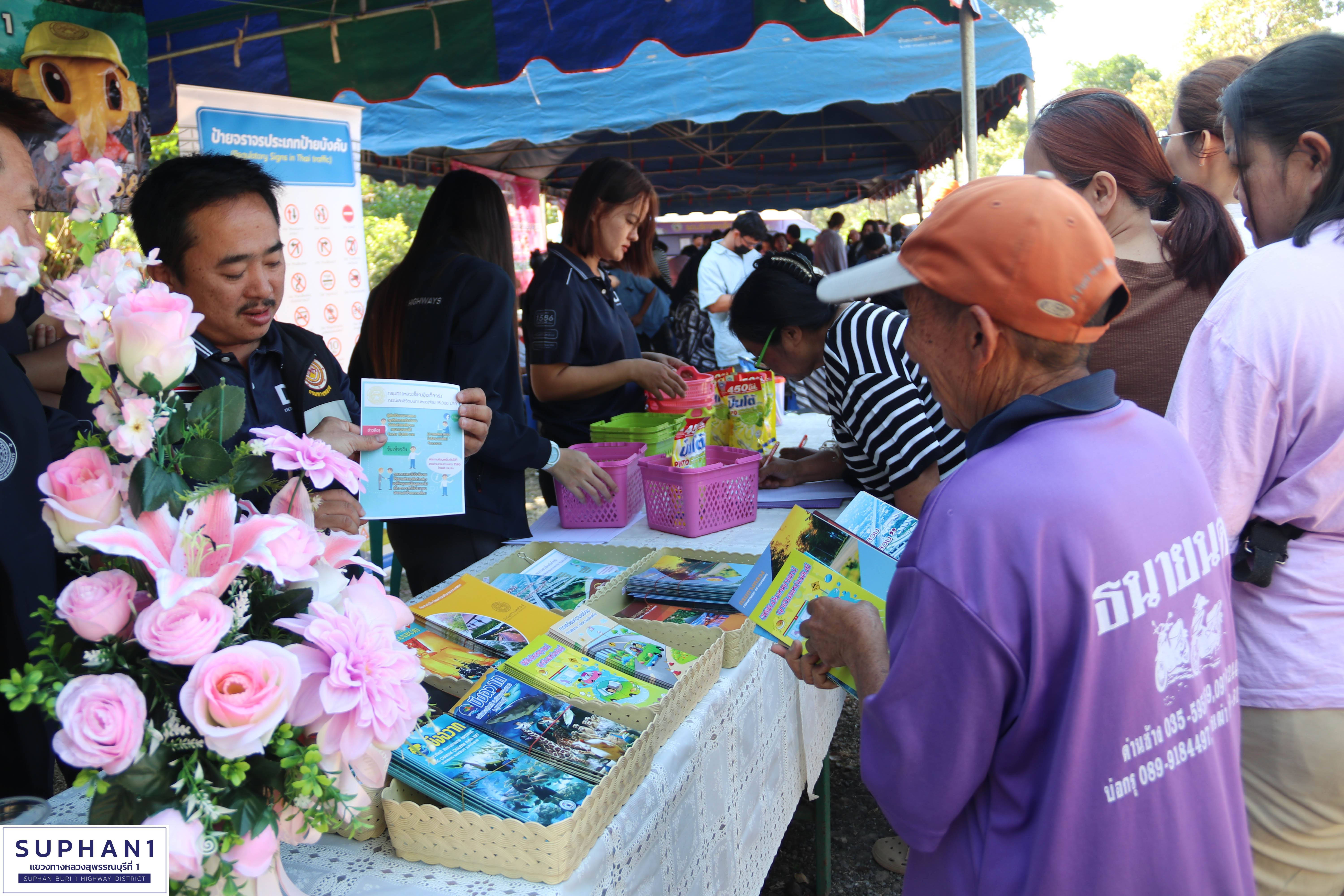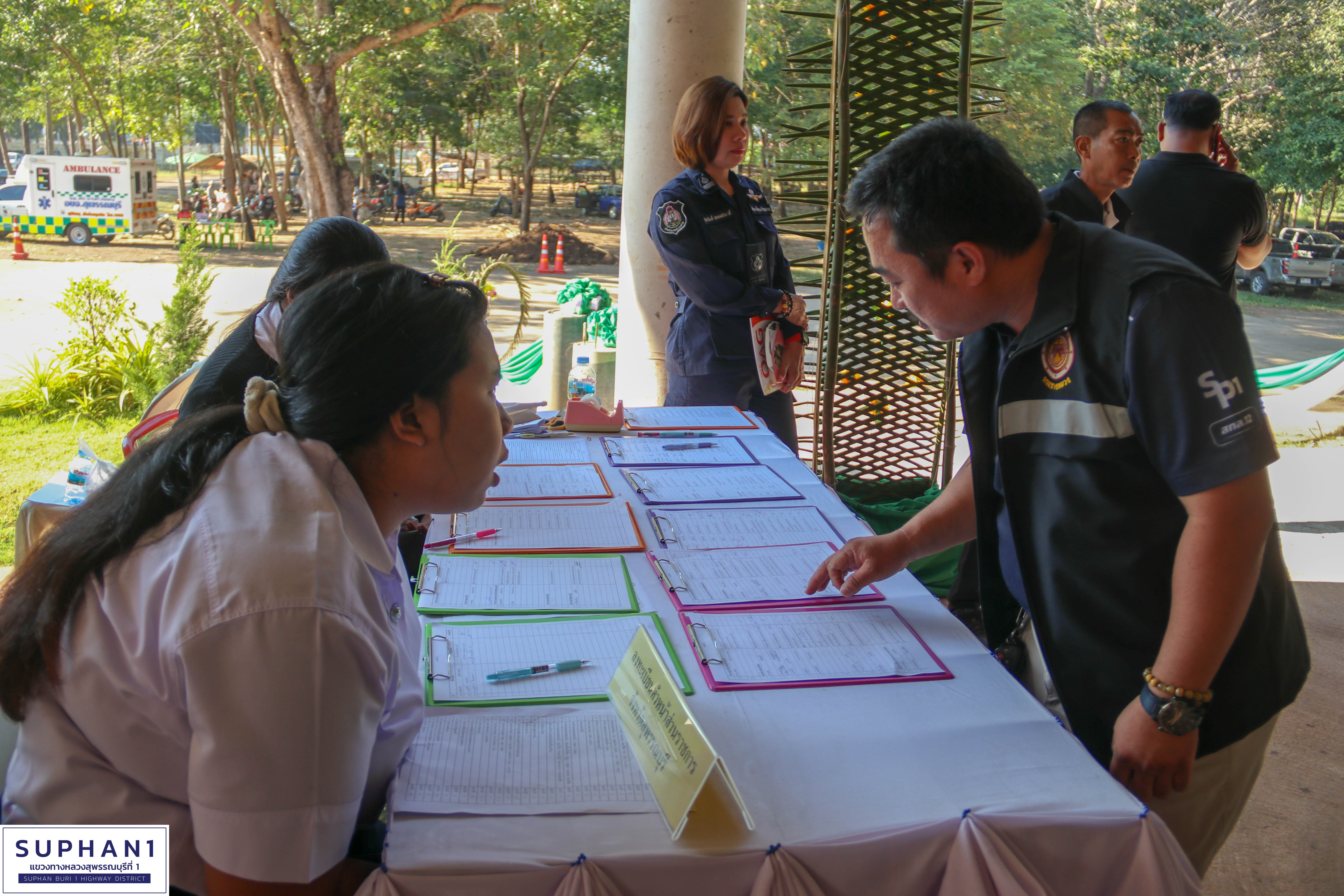 นายชีนะพันธ์ ปันทะสืบ ชม.ขท.ด่านช้าง พร้อมเจ้าหน้าที่ในสังกัดแขวงทางหลวงสุพรรณบุรีที่ 1
