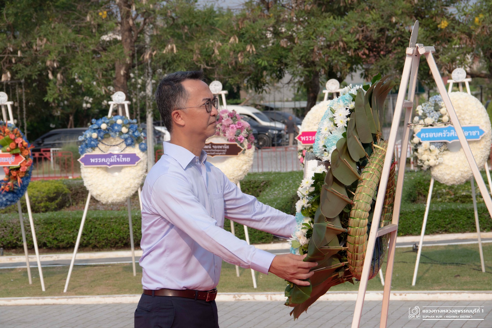 พร้อมด้วยคณะเจ้าหน้าที่ ร่วมพิธีวางพวงดอกไม้