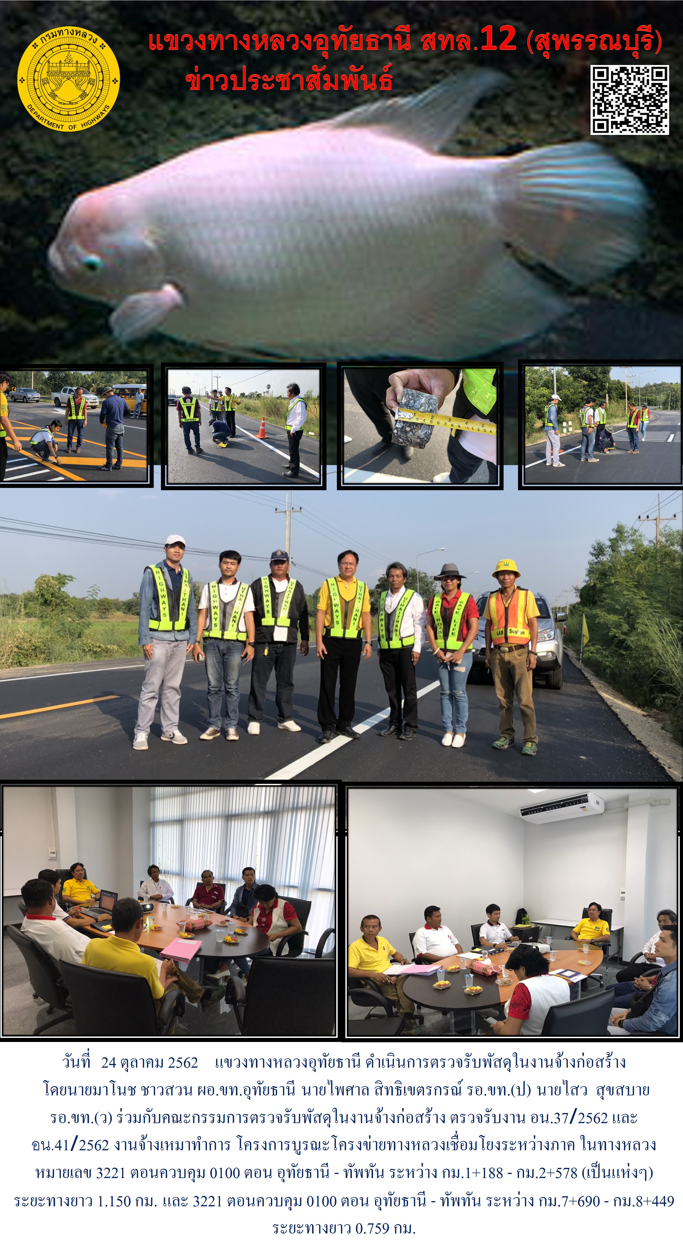 ตรวจรับงานโครงการบูรณะโครงข่ายทางหลวงเชื่อมโยงระหว่างภาค ทางหลวงหมายเลข 333 ตอนบ้านไร่-การุ้ง ระหว่าง กม.99+044 - กม.99+548 ระยะทางยาว 0.504 กม