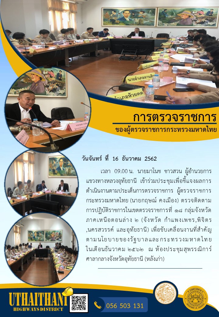 ประชุมประจำเดือน พฤศจิกายน 2562 เพื่อติดตามและสรุปผลการดำเนินงาน ของแขวงทางหลวงอุทัยธานี