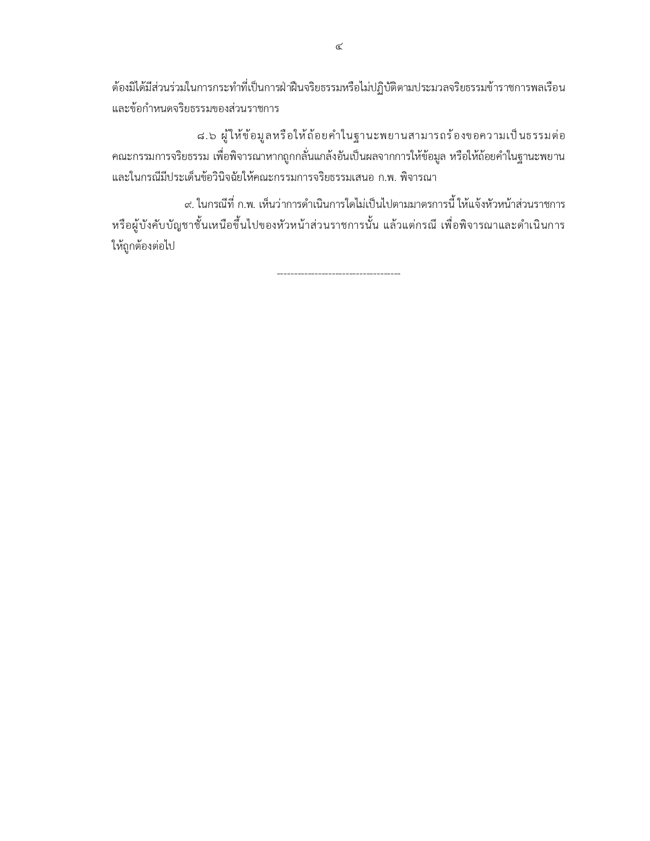 การดำเนินการกรณีข้าราชการฝ้าฝืนจริยธรรมหรือไม่ปฏิบัติตามประมวลจริยธรรมข้าราชการพลเรือน และข้อกำหนดจริยธรรมของส่วนราซการ