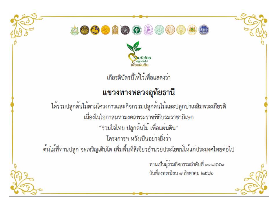 โครงการและกิจกรรมปลูกต้นไม้และปลูกป่าเฉลิมพระเกียรติ เนื่องในโอกาสมหามงคลพระราชพิธีบรมราชาภิเษก "รวมใจไทย ปลูกต้นไม้ เพื่อแผ่นดิน"