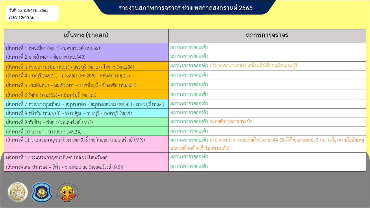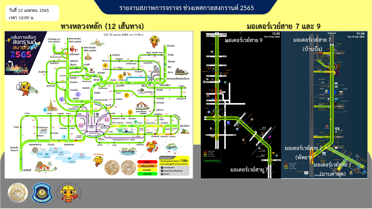 และทางหลวงพิเศษระหว่างเมืองประจำวันที่ 12 เมษายน 2565 เวลา 12.00 น.