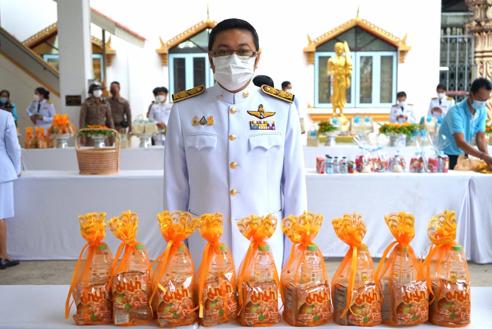 ร่วมกิจกรรมเฉลิมพระเกียรติสมเด็จพระนางเจ้าสิริกิติ์ พระบรมราชินีนาถ พระบรมราชชนนีพันปีหลวง เวลา 06.30 น. พิธีทำบุญตักบาตร