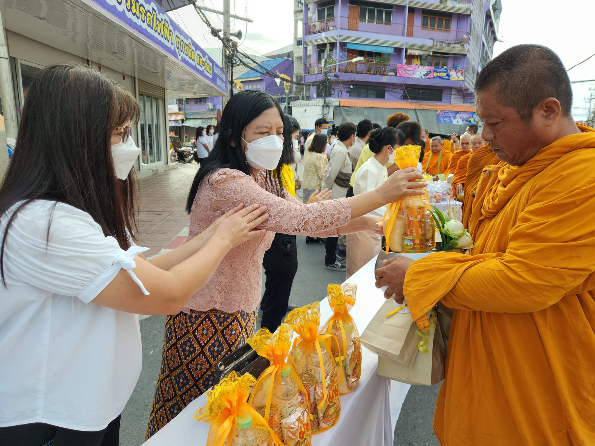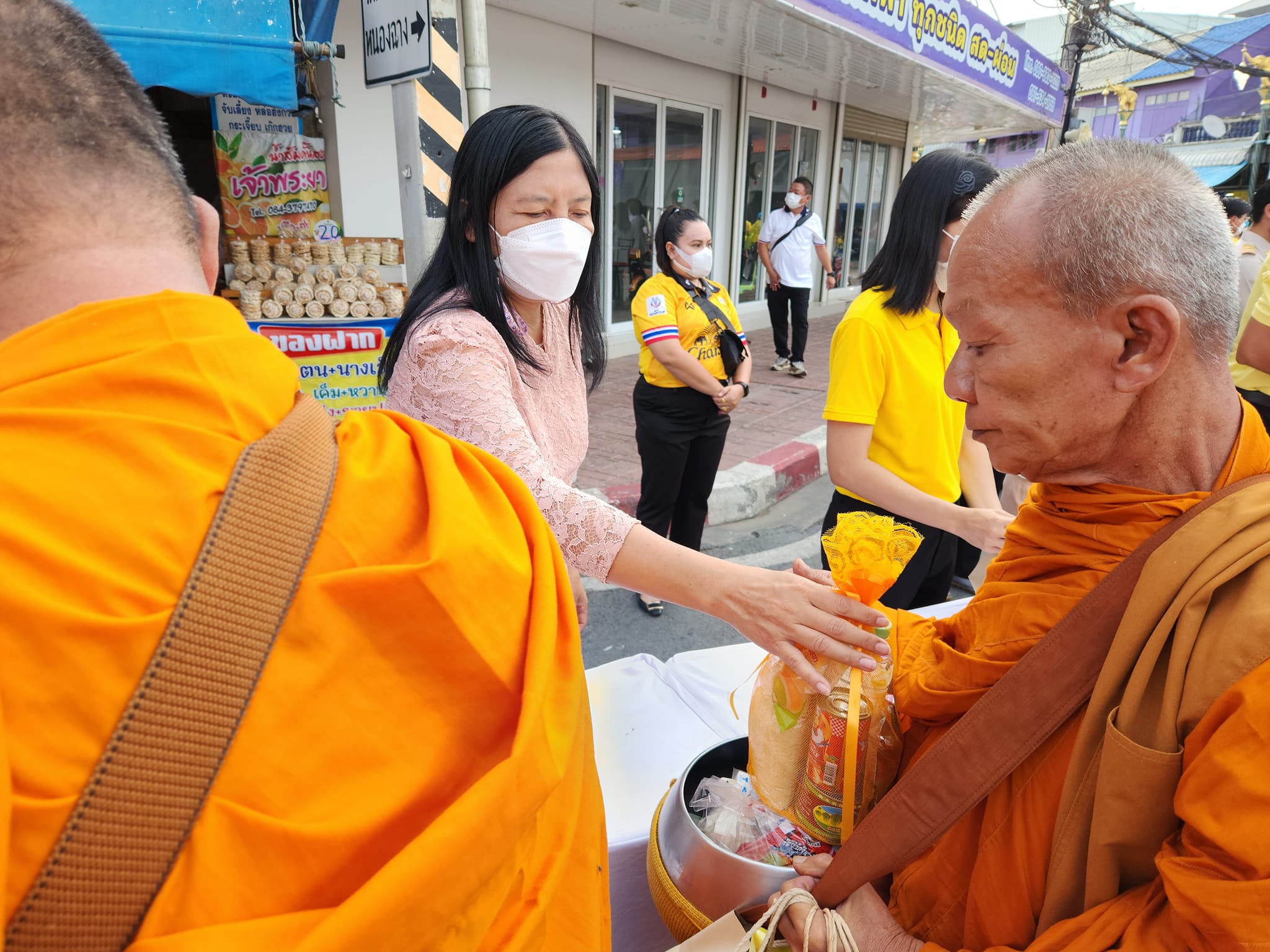 นายสมโภช โอทาตะ ผอ.ขท.อุทัยธานี มอบหมายให้ นางสาวเพียงจิตต์ เหลือจ้อย รอ.ขท.อุทัยธานี เข้าร่วมพิธีทำบุญตักบาตรถวายพระกุศล