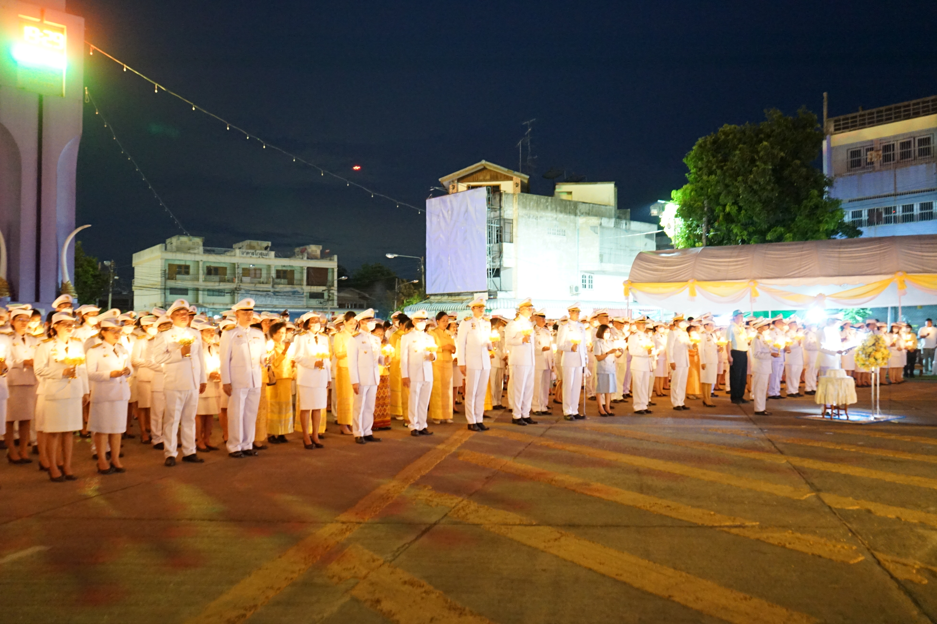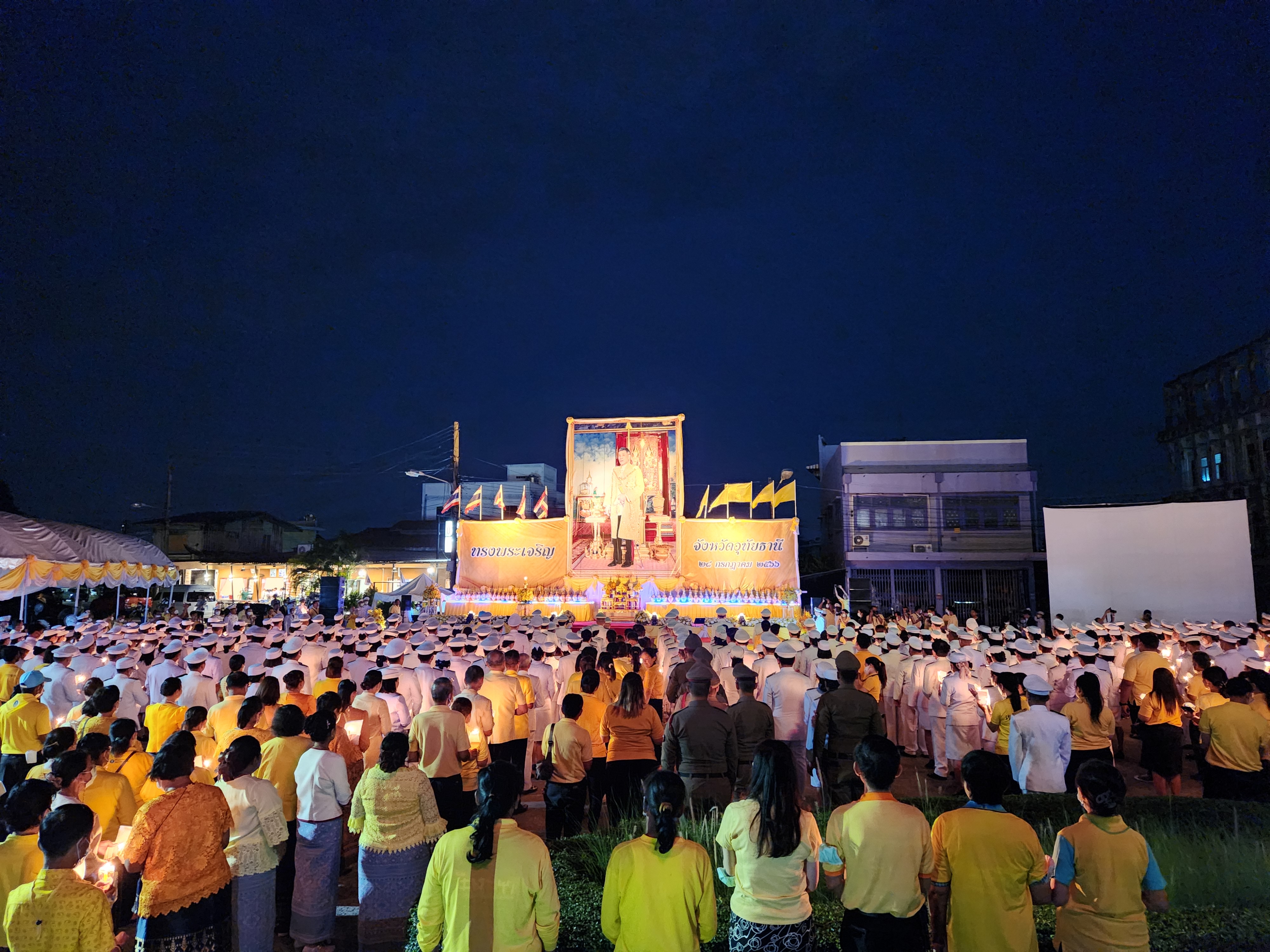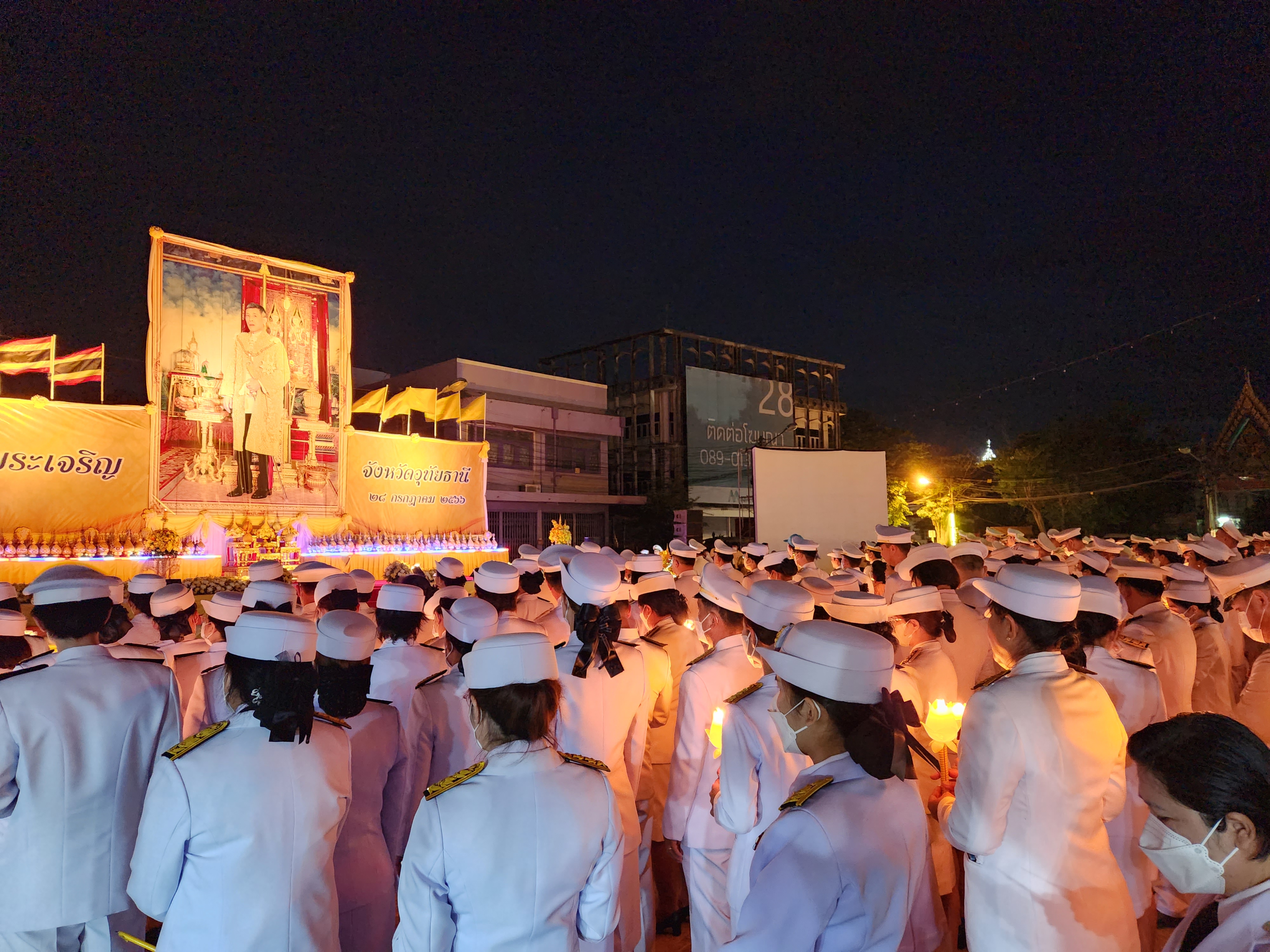 นายสมโภช โอทาตะ ผู้อำนวยการแขวงทางหลวงอุทัยธานี พร้อมด้วยข้าราชการในสังกัด ร่วมพิธีถวายเครื่องราชสักการะและวางพานพุ่ม และพิธีจุดเทียนถวายพระพรชัยมงคล ณ บริเวณวงเวียนหอนาฬิกา อำเภอเมืองอุทัยธานี จังหวัดอุทัยธานี