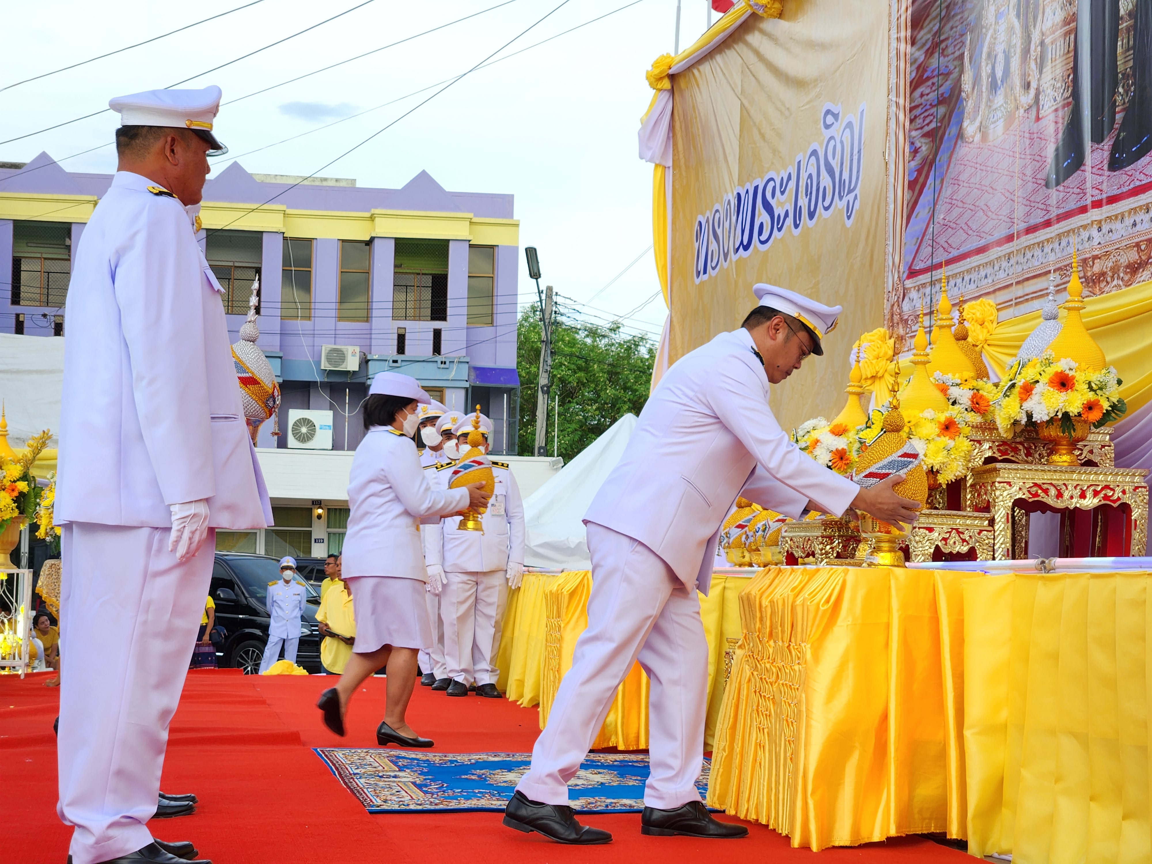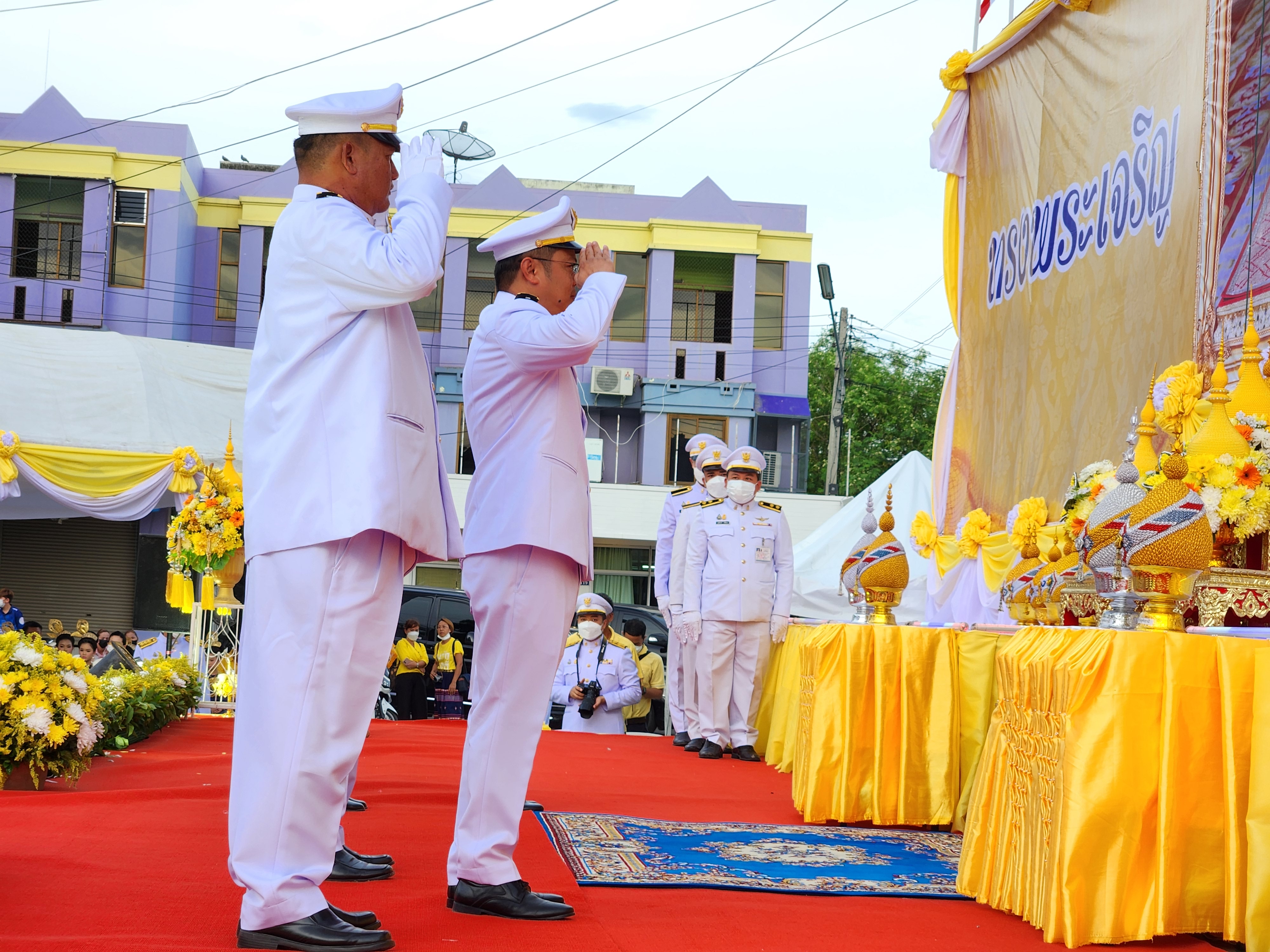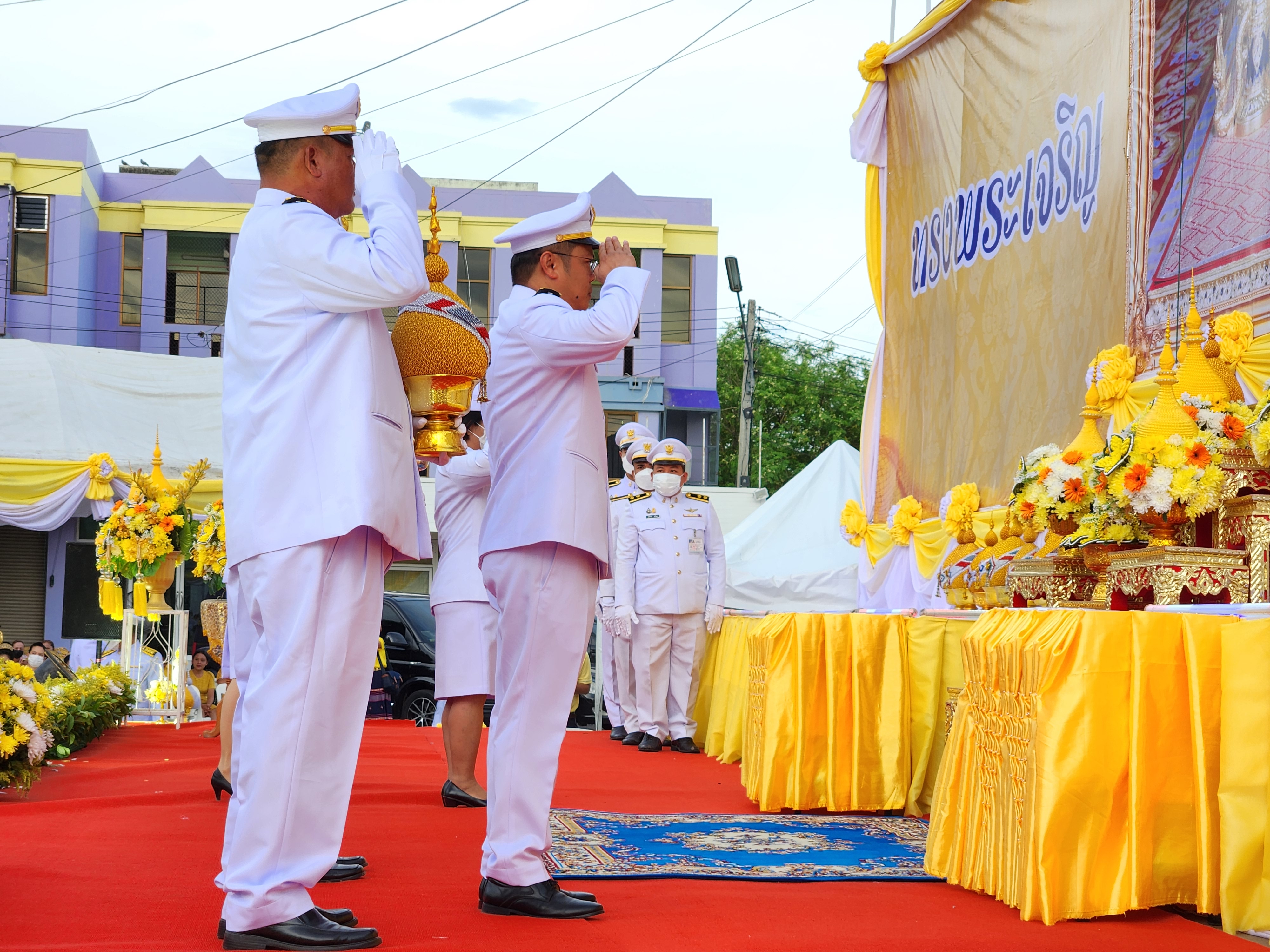 นายสมโภช โอทาตะ ผู้อำนวยการแขวงทางหลวงอุทัยธานี พร้อมด้วยข้าราชการในสังกัด ร่วมพิธีถวายเครื่องราชสักการะและวางพานพุ่ม และพิธีจุดเทียนถวายพระพรชัยมงคล ณ บริเวณวงเวียนหอนาฬิกา อำเภอเมืองอุทัยธานี จังหวัดอุทัยธานี