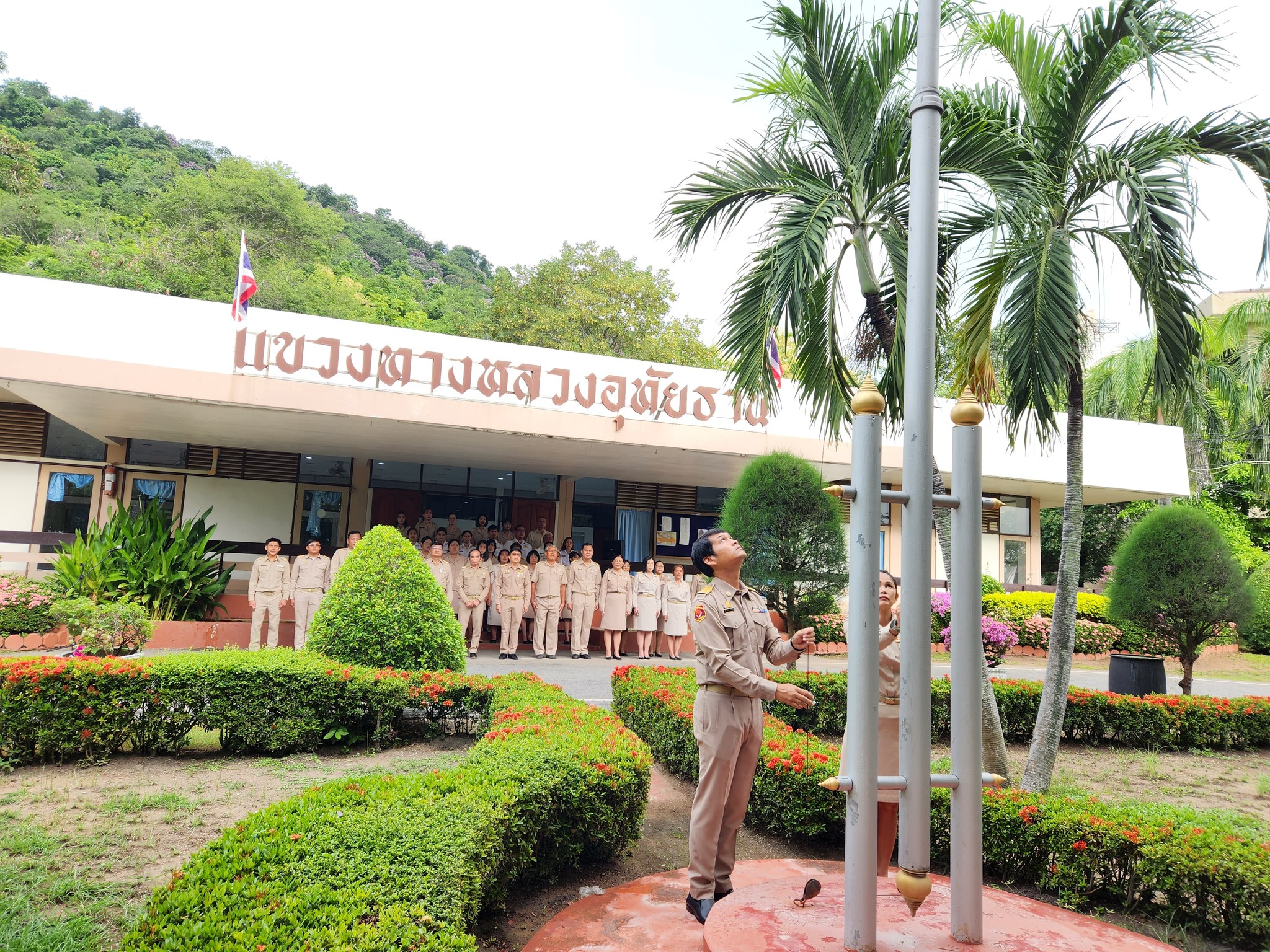 นายสมโภช โอทาตะ ผู้อำนวยการแขวงทางหลวงอุทัยธานี พร้อมข้าราชการและเจ้าหน้าที่ในสังกัด เข้าร่วมกิจกรรมเคารพธงชาติไทยและร้องเพลงชาติไทย เนื่องในวันพระราชทานธงชาติไทย ณ สำนักงานแขวงทางหลวงอุทัยธานี อำเภอเมืองอุทัยธานี จังหวัดอุทัยธานี