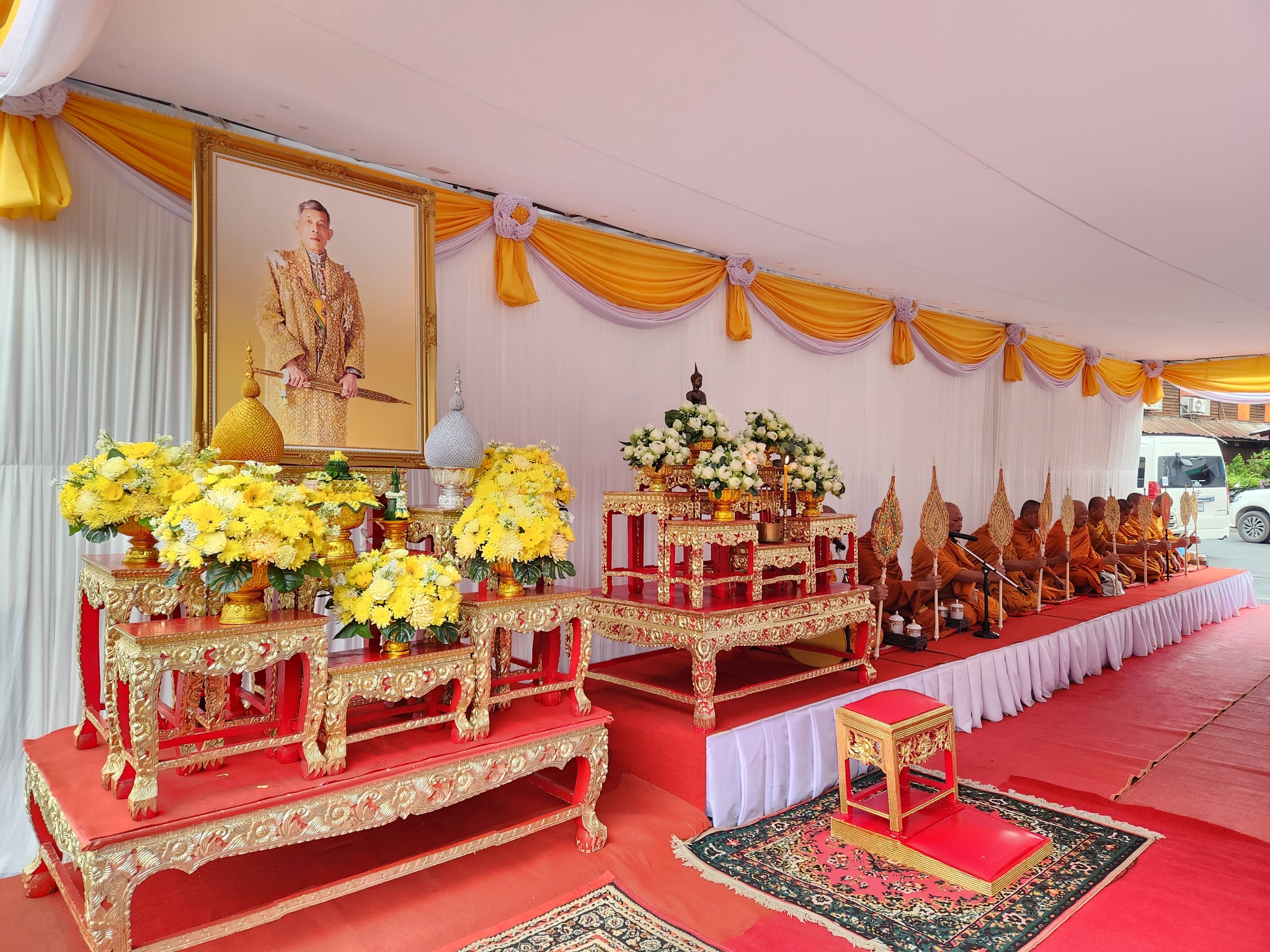 นายสมโภช โอทาตะ ผู้อำนวยการแขวงทางหลวงอุทัยธานี เข้าร่วมพิธีเจริญพระพุทธมนต์และทำบุญตักบาตรถวายพระราชกุศล เนื่องในโอกาสพระราชพิธีมหามงคลเฉลิมพระชนมพรรษา 6 รอบ 28 กรกฎาคม 2567 ณ บริเวณห้าแยกวงเวียนวิทยุ อำเภอเมืองอุทัยธานี จังหวัดอุทัยธานี