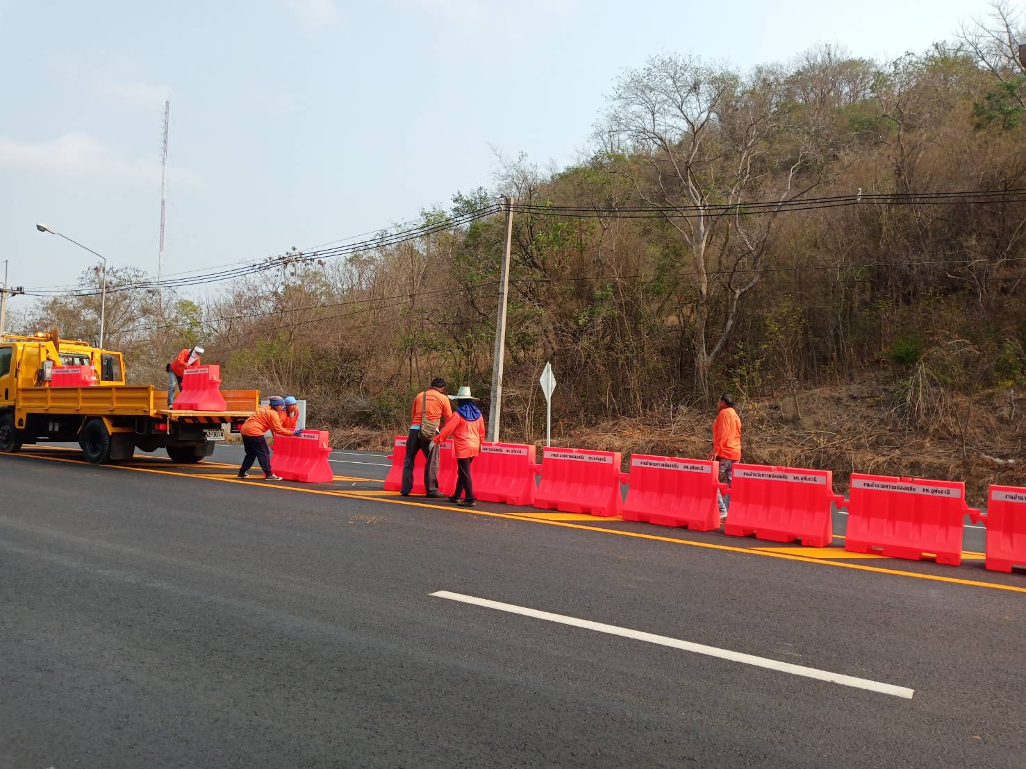ข้อมูลภาพกิจกรรม : งานติดตั้งแบริเออร์และป้ายจราจรกระพริบพลังงานแสงอาทิตย์