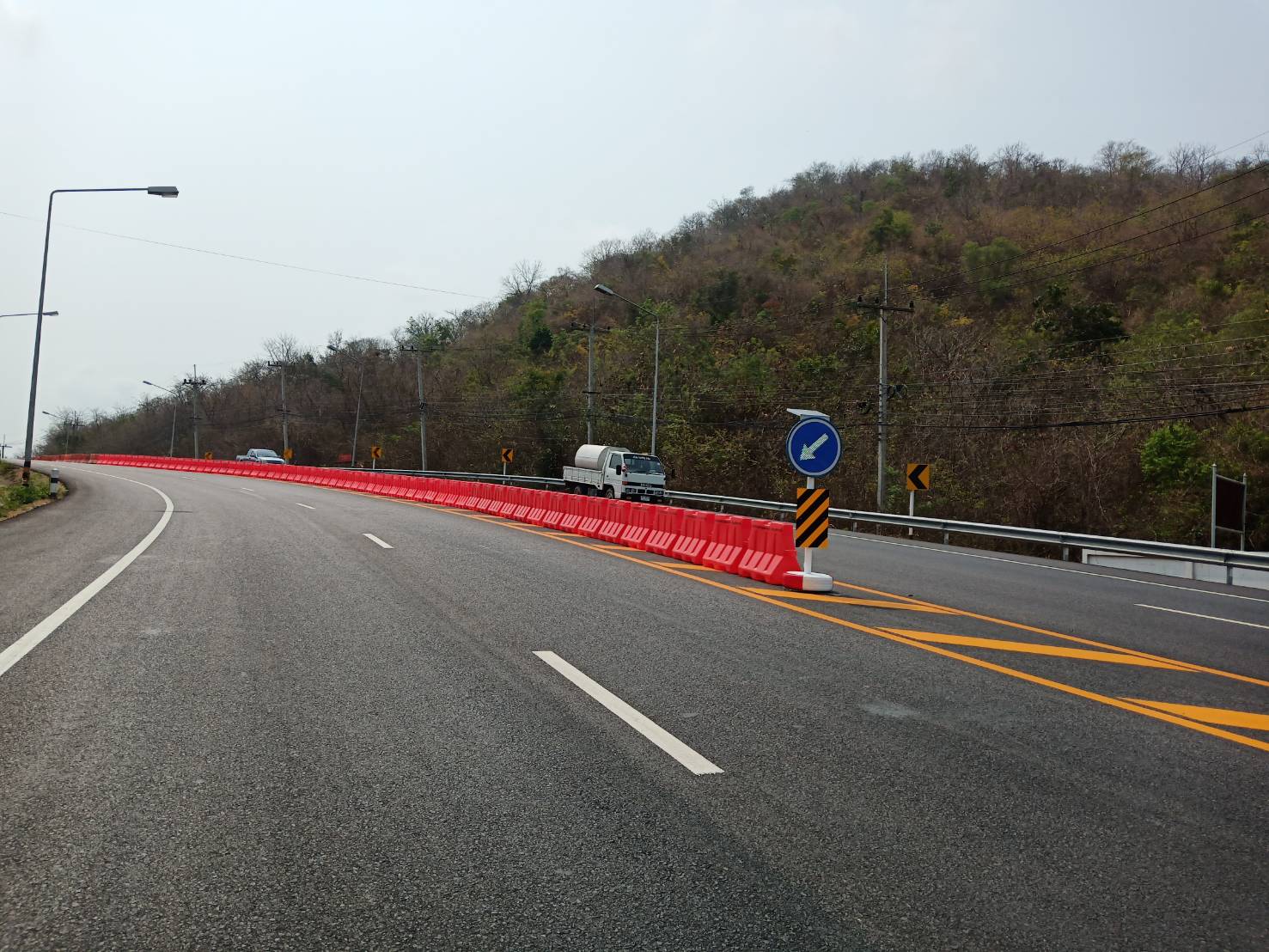 งานติดตั้งแบริเออร์และป้ายจราจรกระพริบพลังงานแสงอาทิตย์