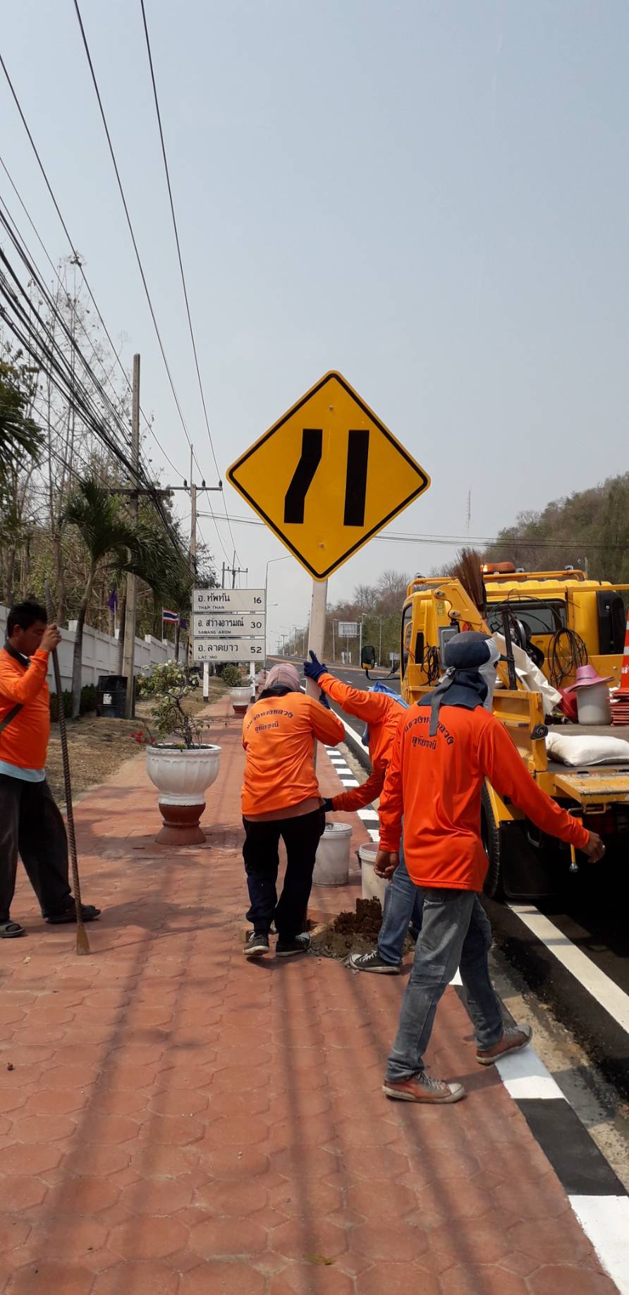 ข้อมูลภาพกิจกรรม : งานติดตั้งป้ายเตือนทางแคบข้างหน้า