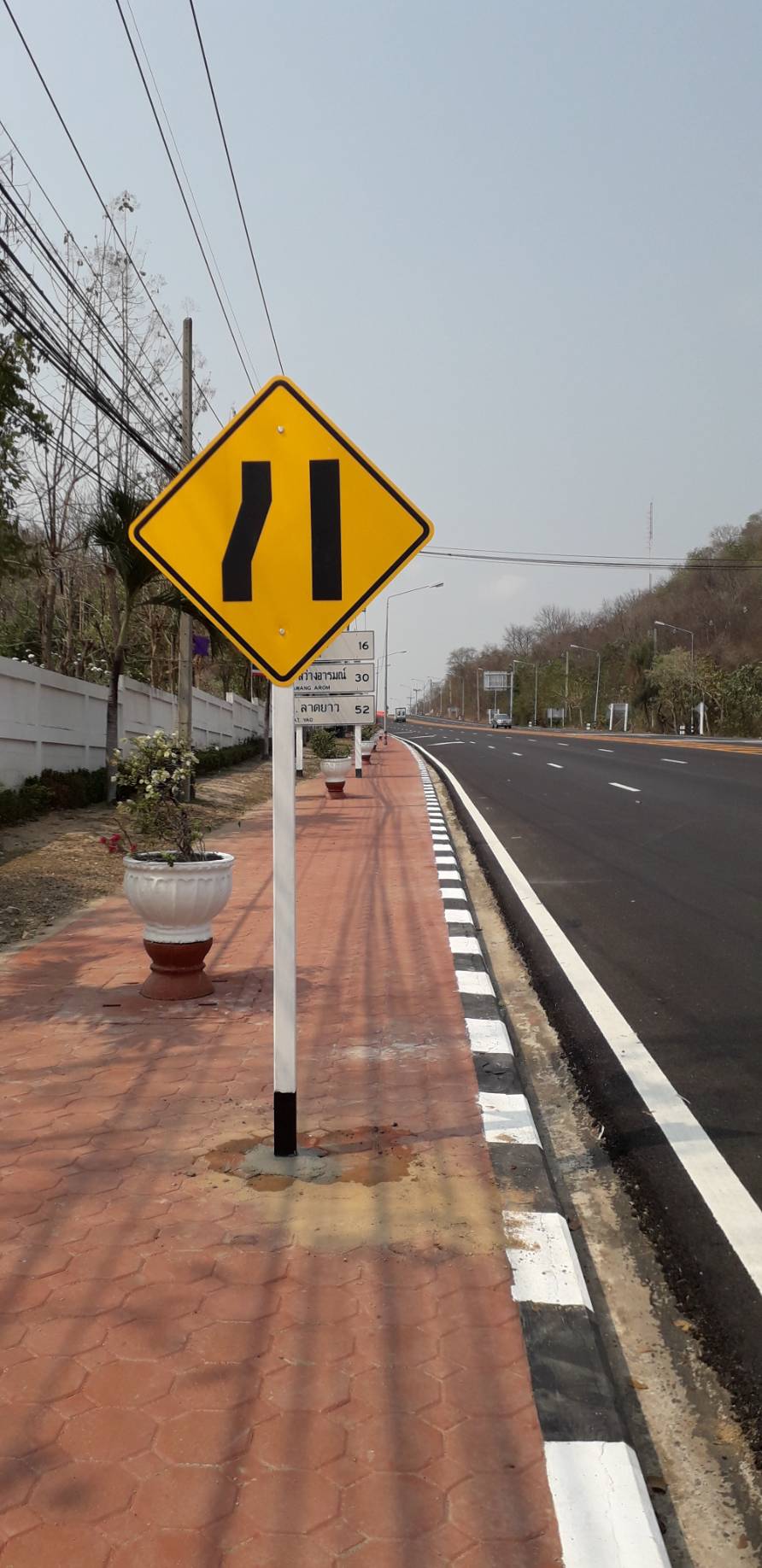 งานติดตั้งป้ายเตือนทางแคบข้างหน้า