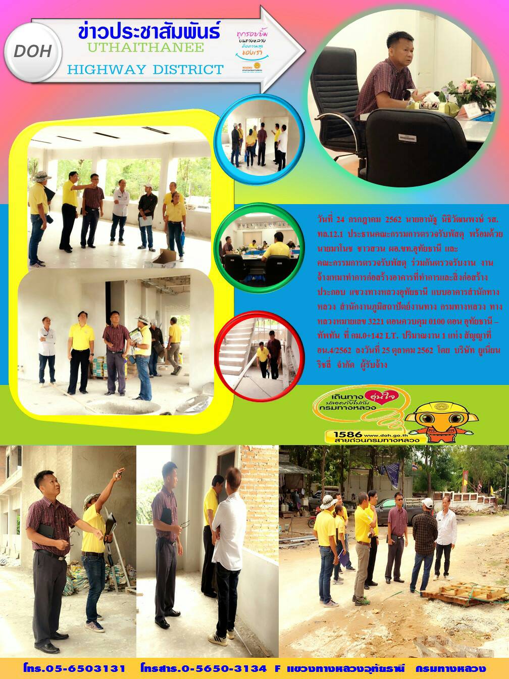 ร่วมกันตรวจรับงาน งานจ้างเหมาทำการก่อสร้างอาคารที่ทำการและสิ่งก่อสร้างประกอบ แขวงทางหลวงอุทัยธานี แบบอาคารสำนักทางหลวง สำนักงานภูมิสถาปัตย์งานทาง กรมทางหลวง ทางหลวงหมายเลข 3221 ตอนอุทัยธานี-ทัพทัน ที่กม.0+142 ปริมาณ 1 แห่ง