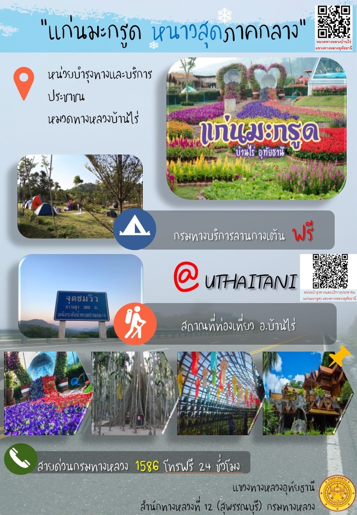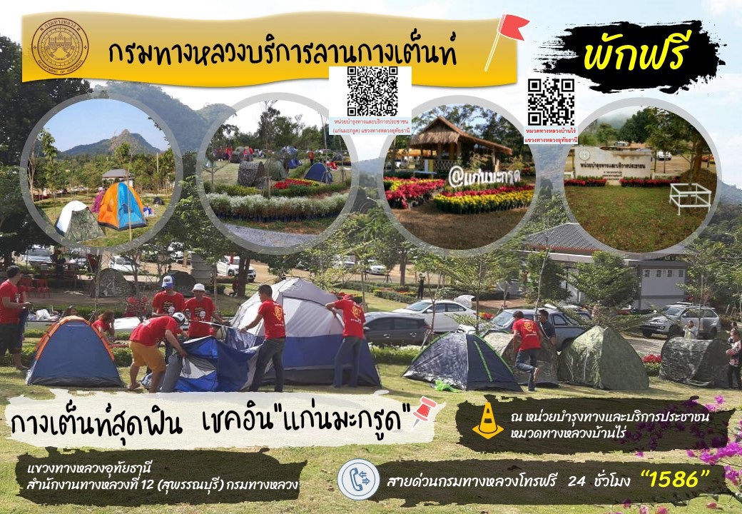 จุดบริการกางเต็นท์สำหรับประชาชนในบริเวณหมวดทางหลวงในสังกัดแขวงทางหลวงอุทัยธานี ช่วงเทศกาลปีใหม่ 2563